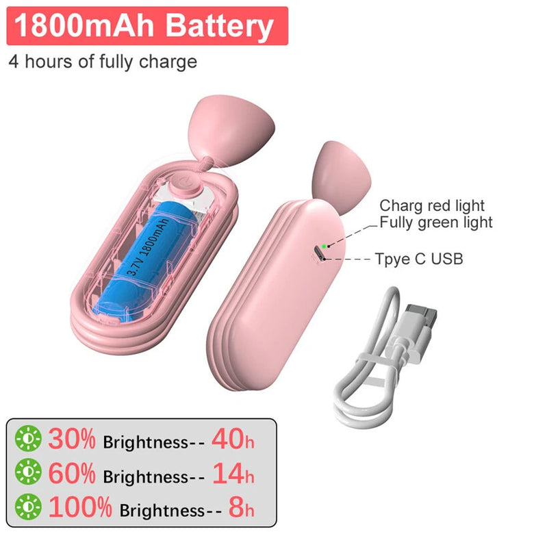 4.Long Battery Life: Powered by a 1800mAh battery, this lamp provides long-lasting illumination, reducing the need for frequent charging.