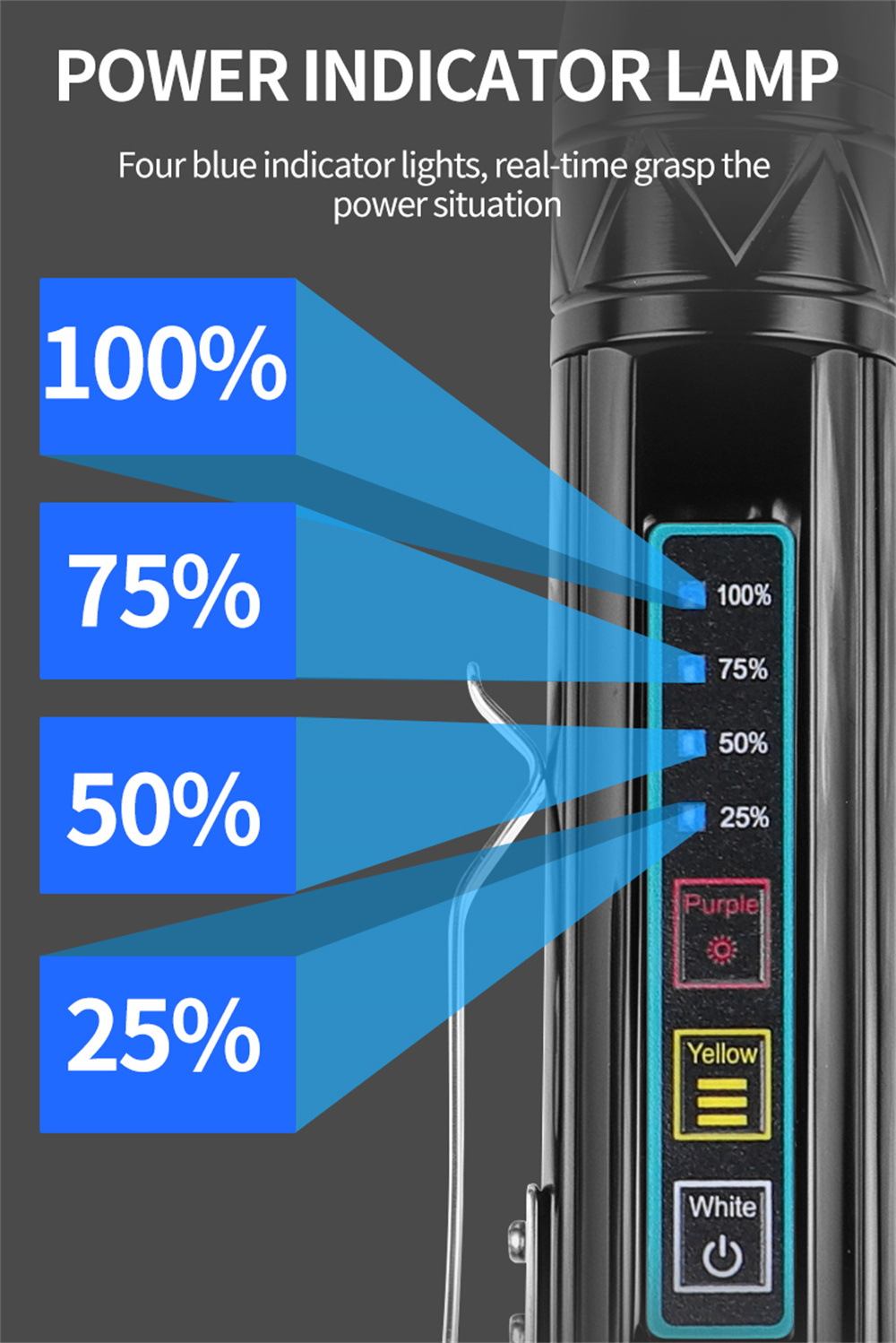 Purple light switch: click to shift: strong light-weak light;Long press to switch the light bulb:365 purple light -395 purple light