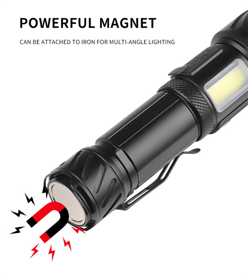 • Bikight Powerful Zoomable Flashlight with COB Sidelight with 18650 Battery Magnet Tail, High Power Tactical Torch USB Rechargeable LED Lantern