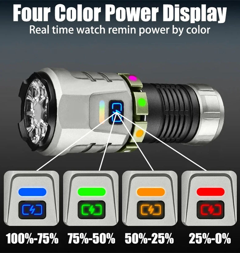 2.4-Color Power Display: Real-time battery monitoring via color changes (100%-75%-50%-25%-0%)