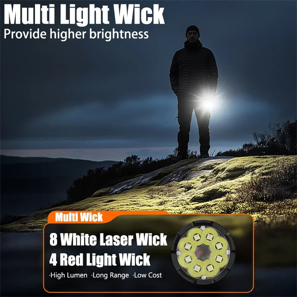 1.8-Core High-Brightness Design: 8 white LEDs + 4 red LEDs for ultra brightness and long-range illumination