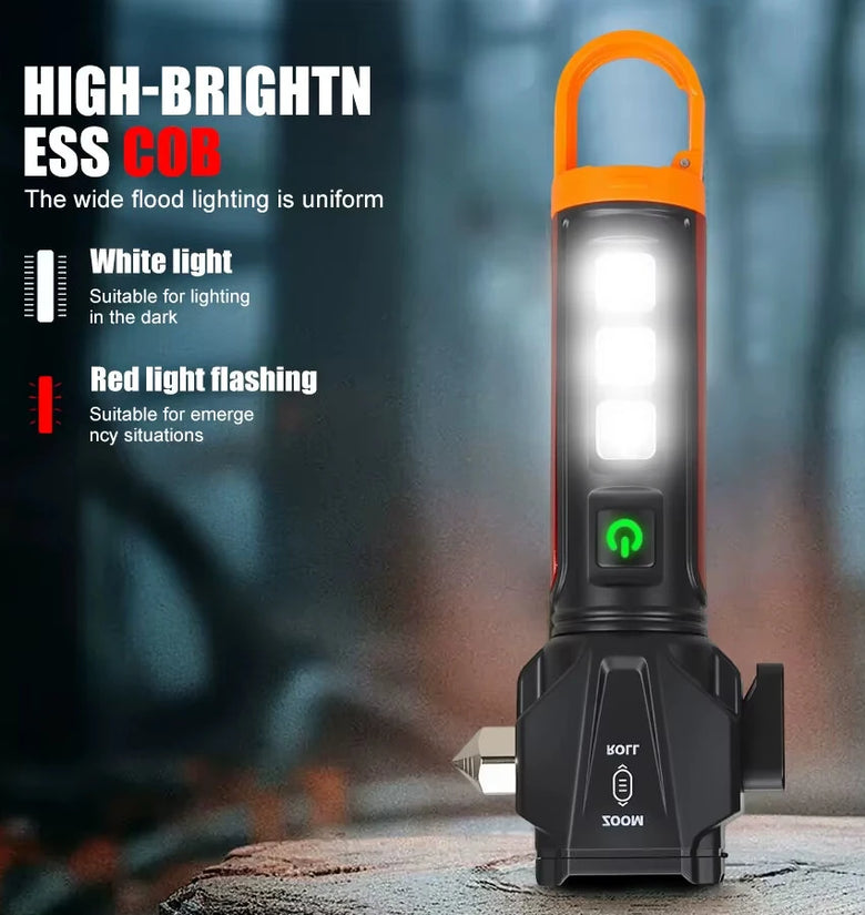 5. Portable Design: Features a tail-end hook for hands-free operation during repairs, camping, or emergencies.