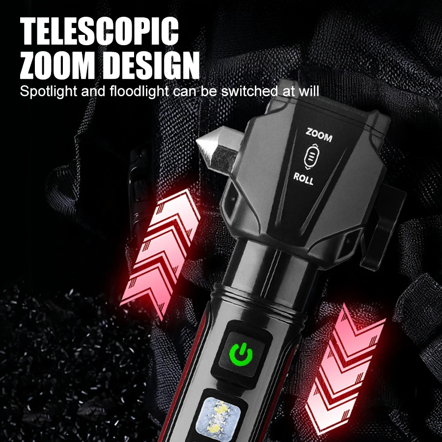 2. Retractable Zoom Function: The focused beam can reach hundreds of meters while the diffused mode provides wide-area illumination.