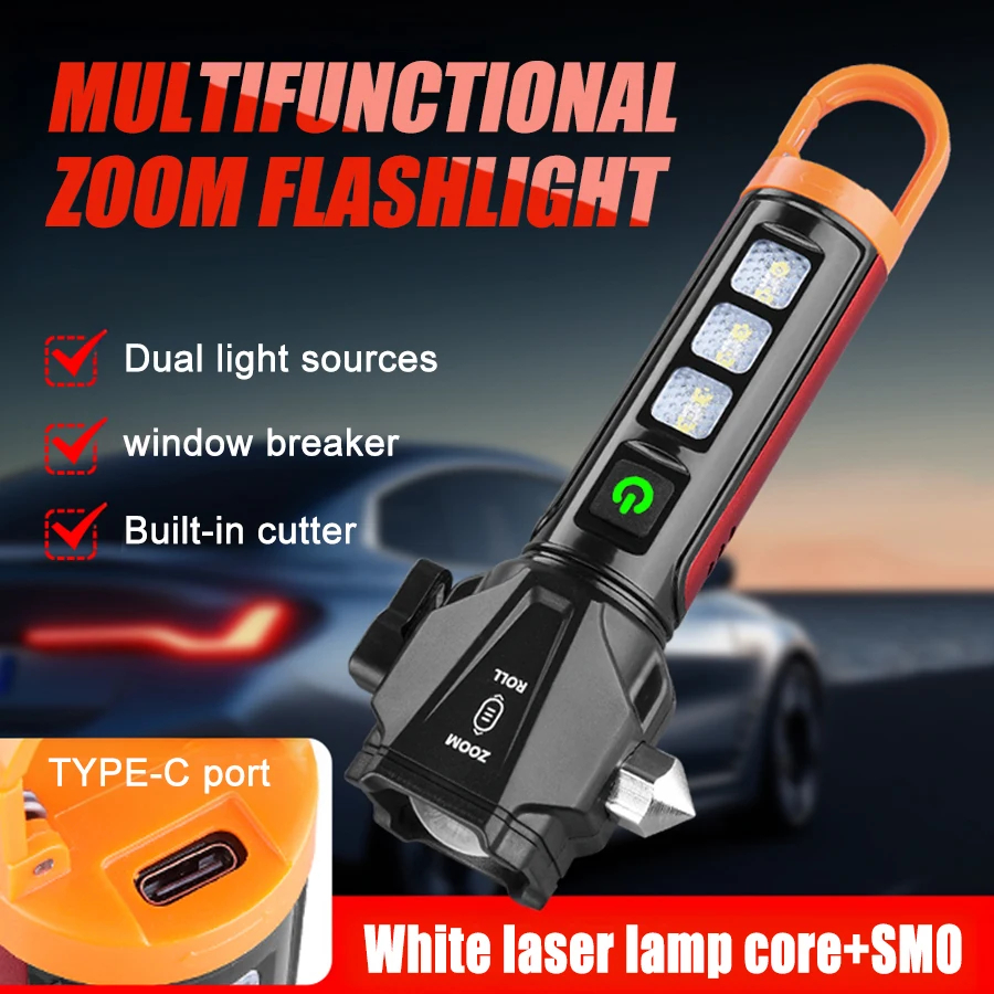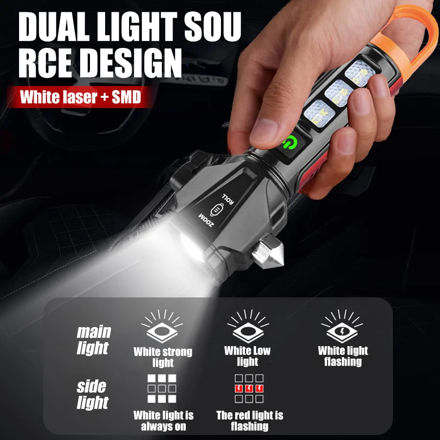 3. Emergency Tools: Equipped with a safety hammer for breaking car windows and a concealed seat belt cutter for emergencies.
