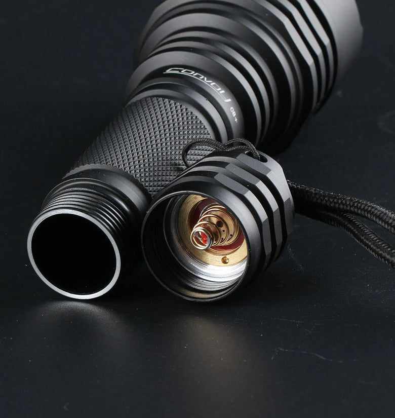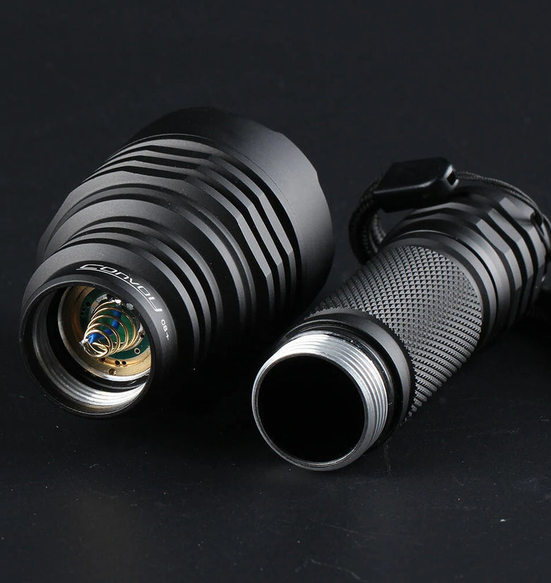 If the flashlight temperature is below 55 degrees Celsius, it will output full current. If it is above 55 degrees Celsius, it will constantly adjust the current so that the flashlight will not overheat.