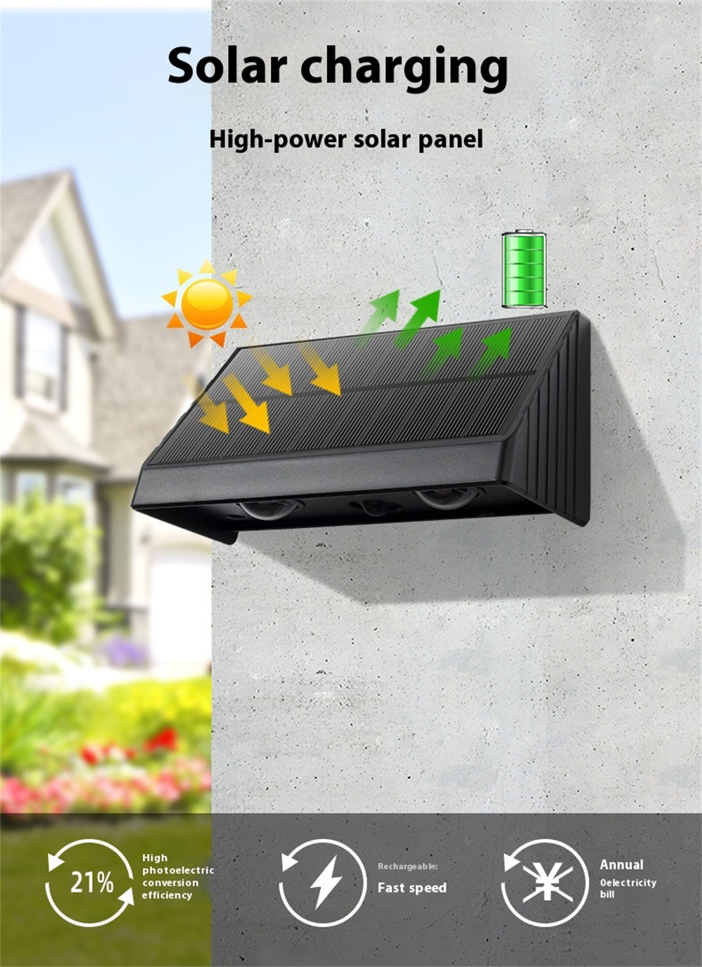 - Solar Powered & Auto On/Off: Charges during the day and lights up automatically after dark. High 21% conversion rate supports long runtime with zero electricity cost.