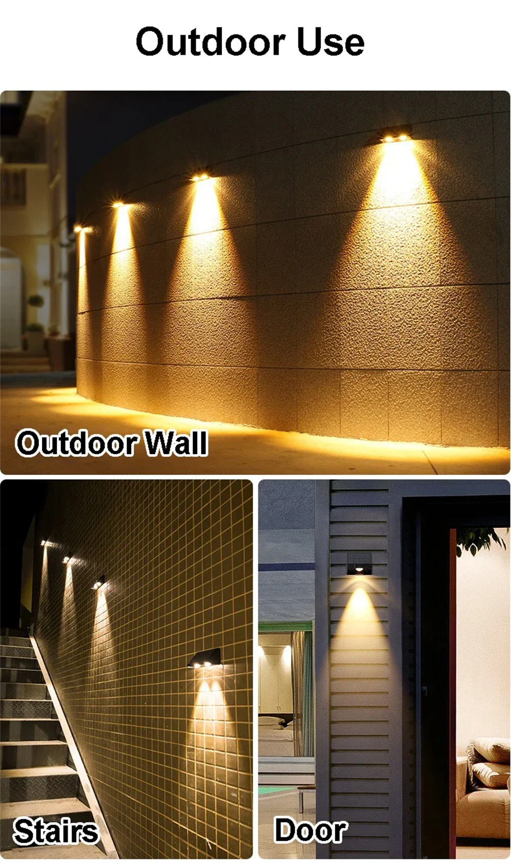 - Wall-Wash Accent Glow: Lens-focused design delivers a soft downward beam, adding a decorative wash effect to walls, fences, and pathways for a stylish night look.
