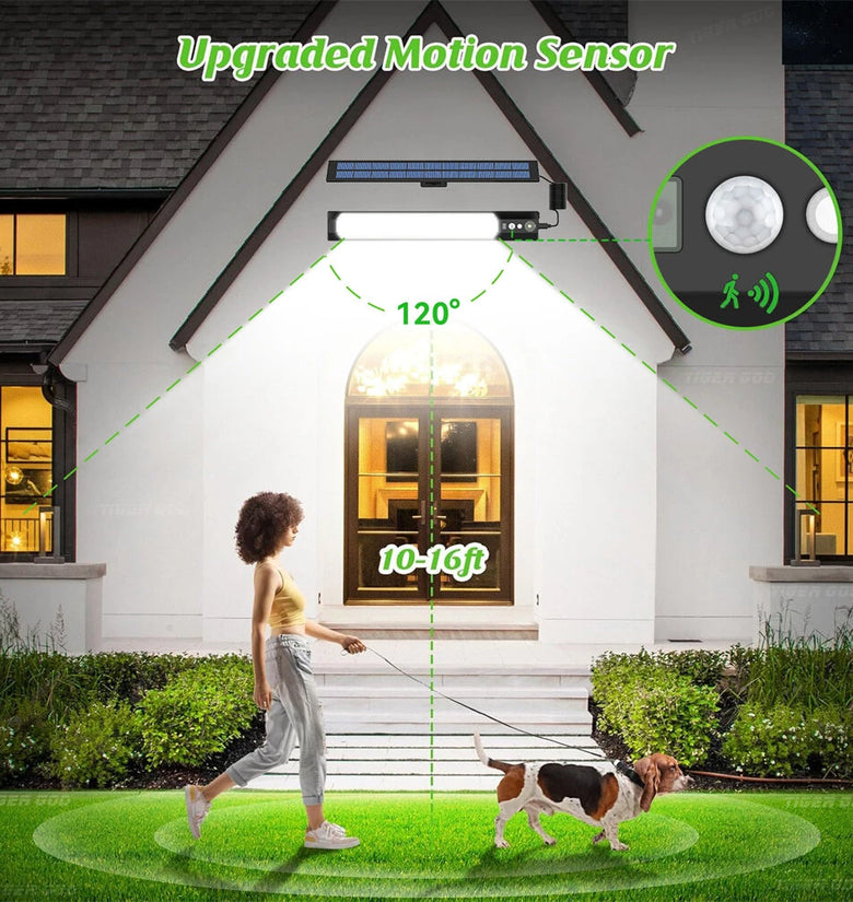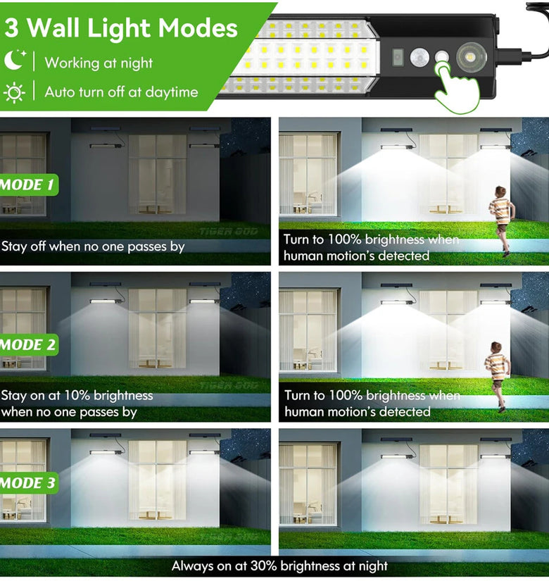 • Click the switch to enter mode 1: At night, no motion detected, light off; motion detected, strong light up for 20 seconds