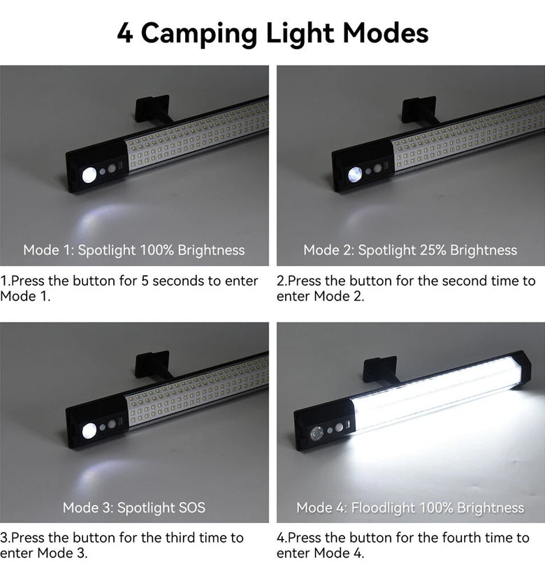 • Long press the switch for 5 seconds to enter the gear 1: strong spotlight always on