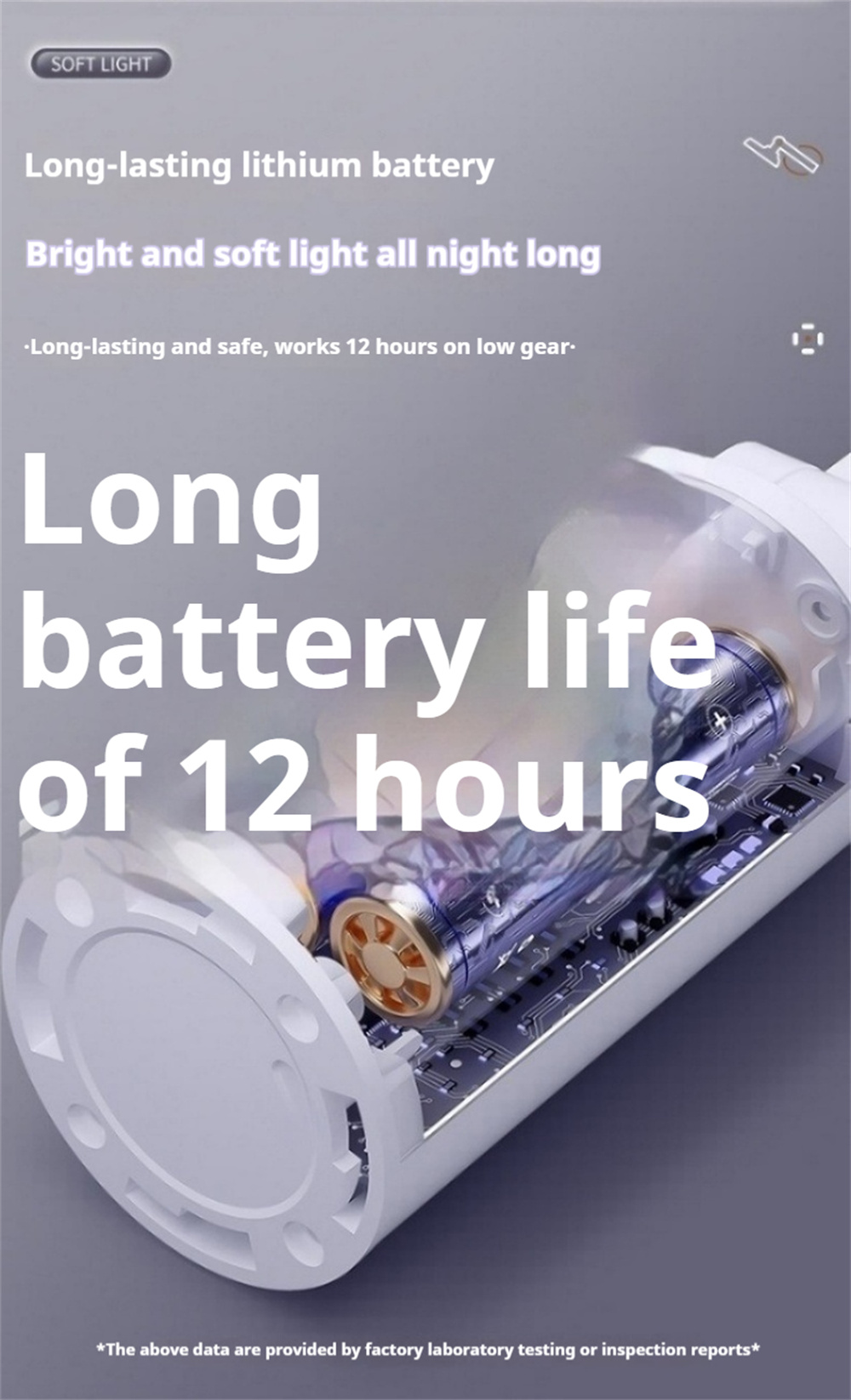 - Long-Lasting Rechargeable Battery: Built-in 3600mAh lithium battery provides extended runtime, delivering up to 12 hours of soft, safe illumination on low mode—ideal for all-night use.