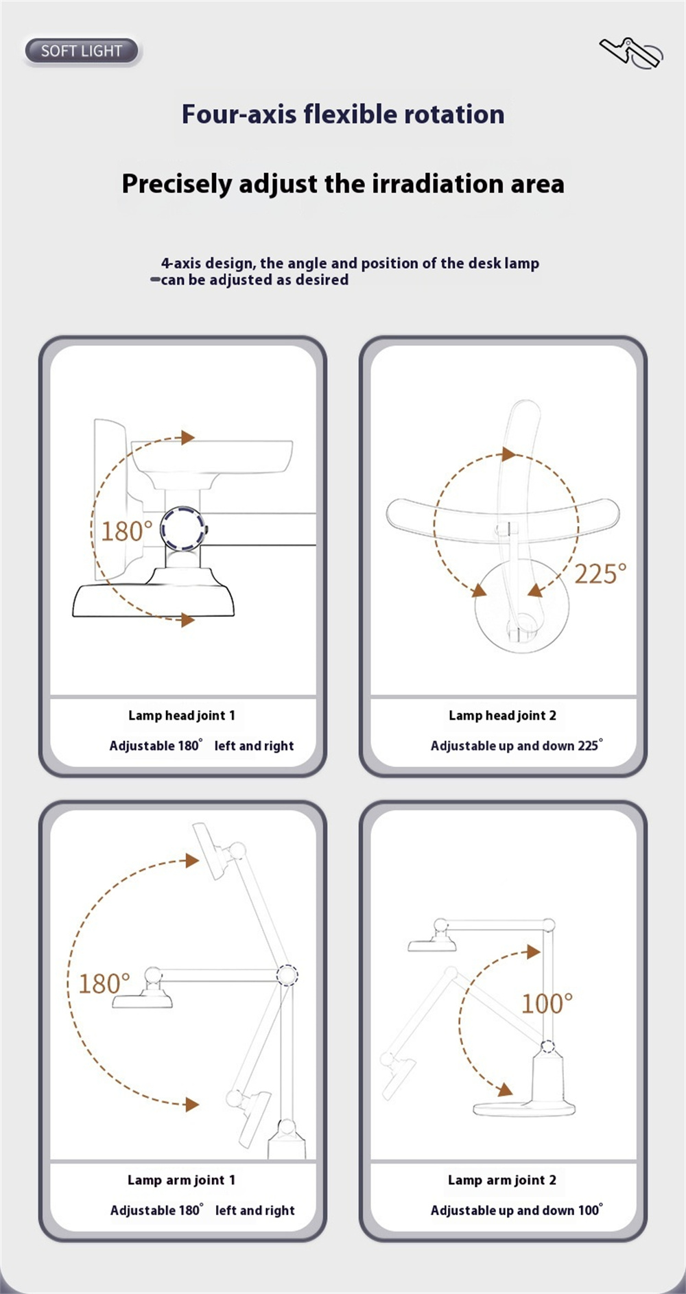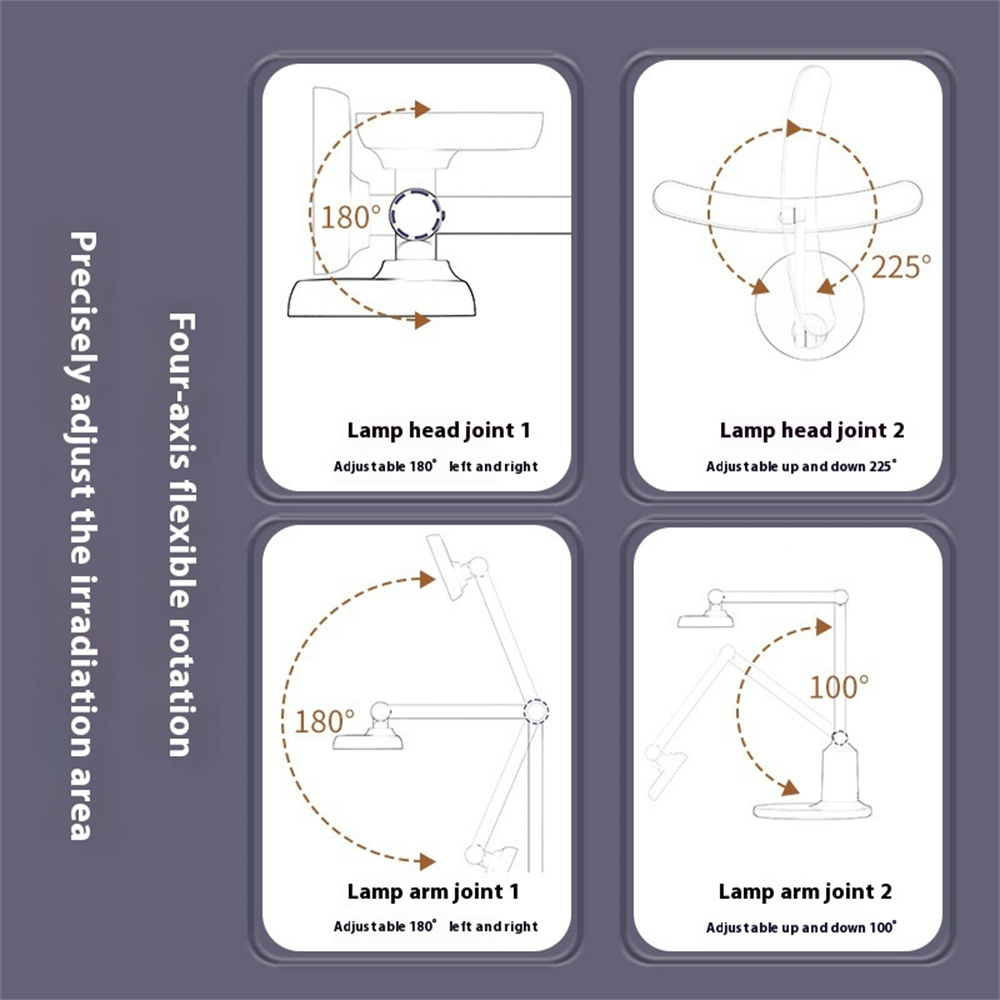 - Flexible 4-Axis Design: Equipped with four adjustable joints, this desk lamp offers precise control over lighting angle and direction, ensuring the light is always exactly where you need it.