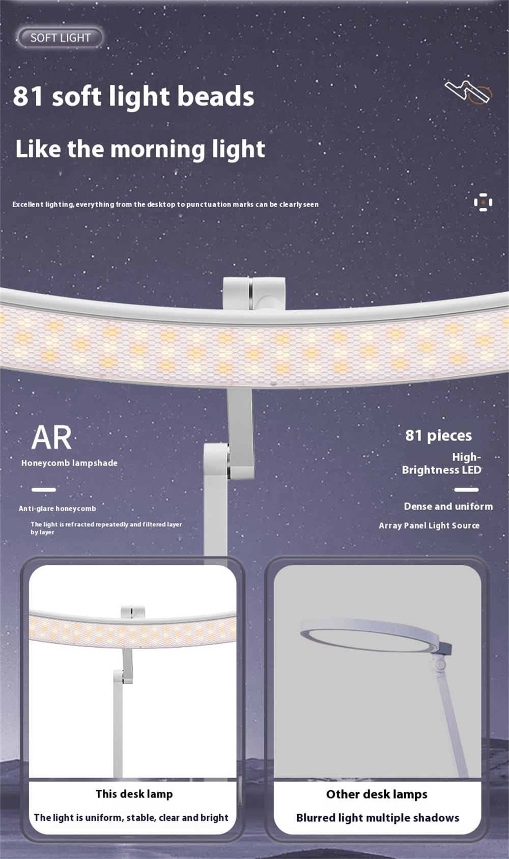 - Eye-Friendly & Safe: With 81 high-quality LEDs and a CRI≥95, the lamp delivers bright yet gentle illumination that reduces eye strain while maintaining natural color accuracy.