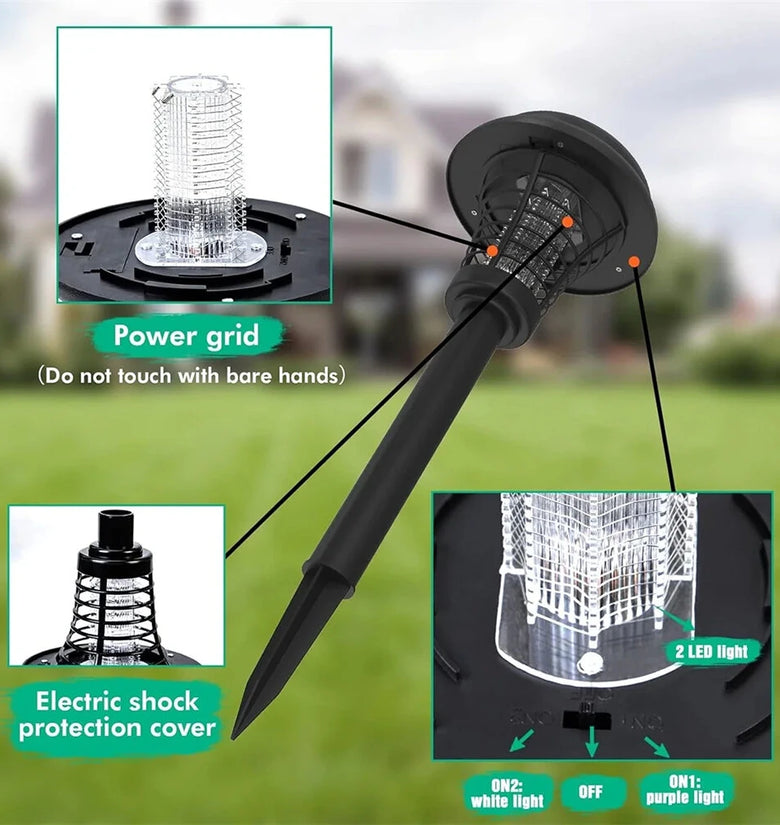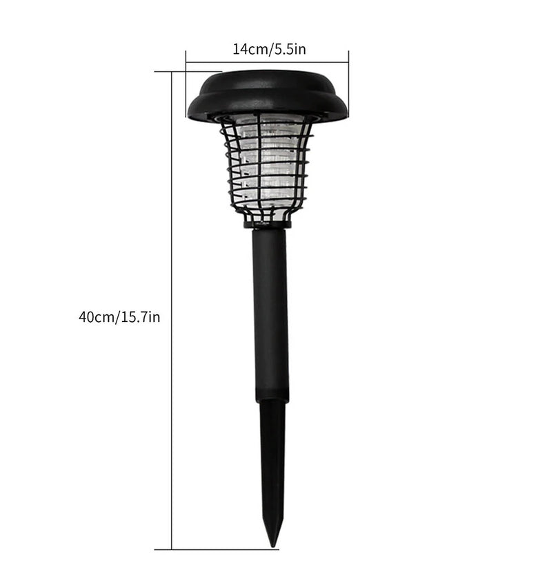 - Effective Fly and Insect Control: Featuring a high-intensity UV bulb, the Solar Garden Mosquito Killer efficiently attracts and eliminates flying insects such as moths. Upon nearing the trap, insects are swiftly neutralized by the electric grid, ensuring a pest-free environment.