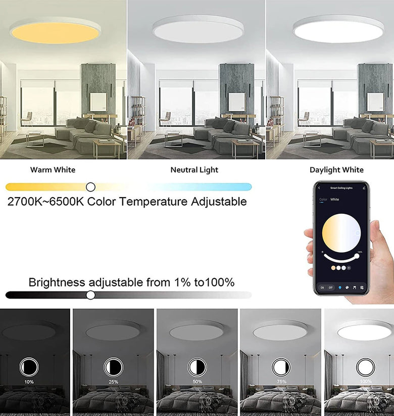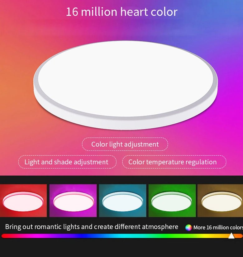- Vibrant Color Range: With RGB+CW capabilities, this smart ceiling light offers a broad spectrum of colors, including warm to cool whites (2700K-6500K). Customize ambiance for any occasion, from cozy dinners to vibrant parties, with 16 million available hues.
