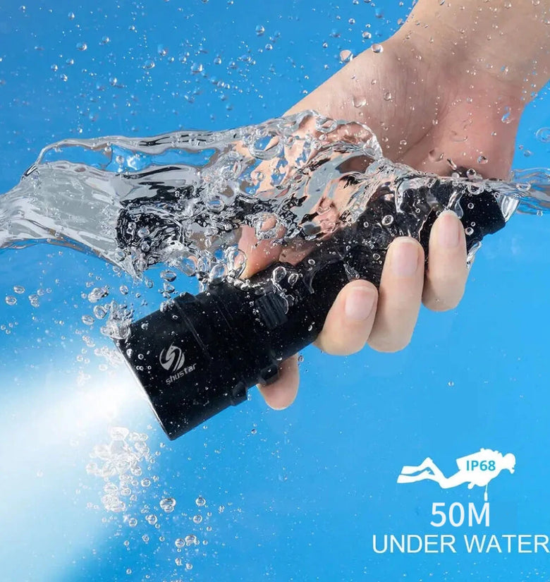 1. BRIGHT LED LIGHTING: Adopts LED Highlights to emit even, super bright spotlight when diving, fishing, hiking, camping, trekking or emergencies