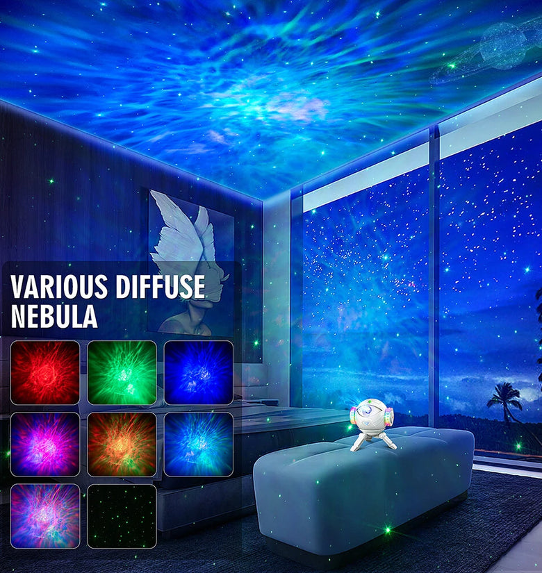 Transform your space into a galaxy with the projector's 360° rotation capability. The wide coverage ensures that every corner of the room is filled with stunning, dynamic visuals, perfect for enhancing parties, gaming rooms, or calming yoga sessions.