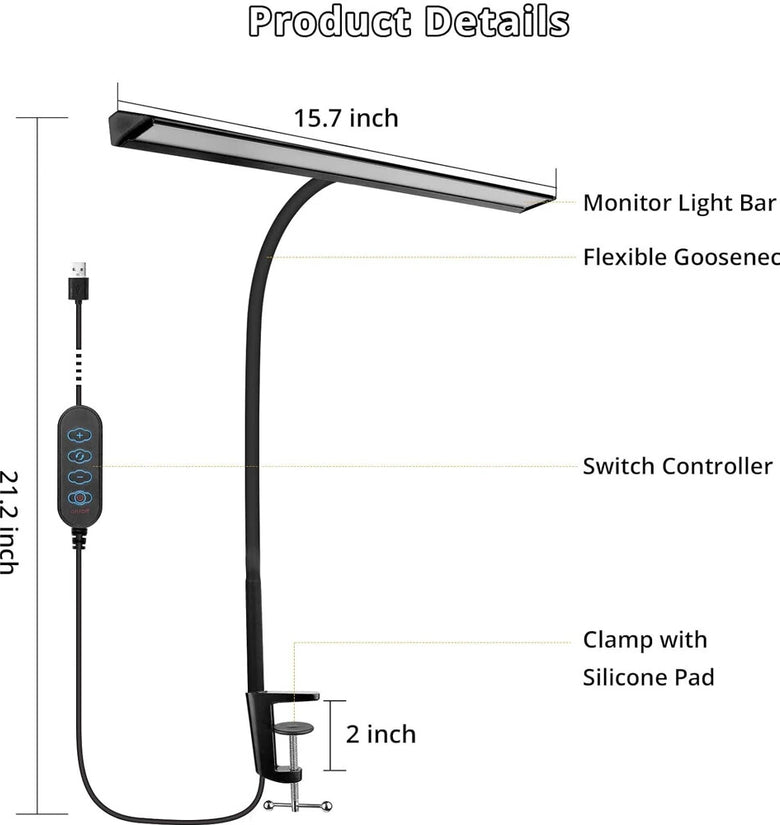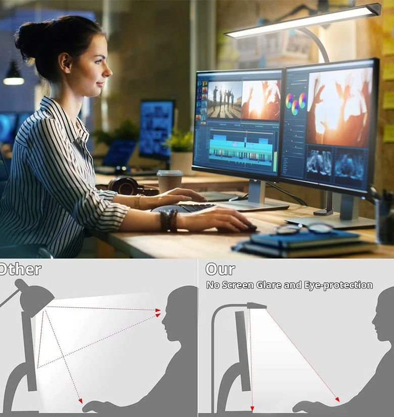 - No Screen Glare and Eye-protection: Utilizes asymmetric optical design with non-flickering LED light source to reduce glare and eye strain, perfect for extended working hours.