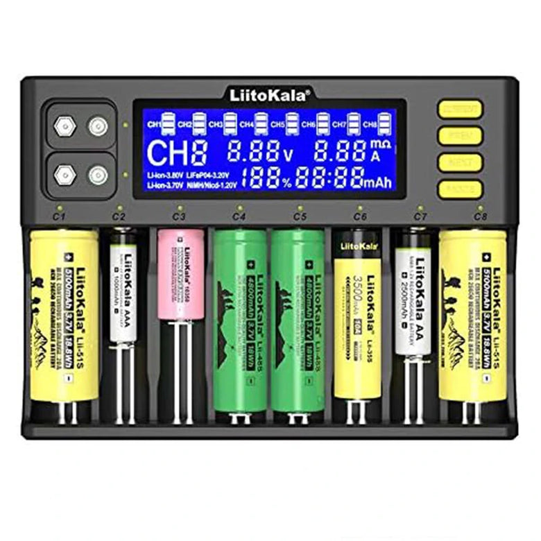 2.Compatible with Li-ion (4.20V / 4.35V) / IMR / INR / ICR / LiFePO4 (3.60V) and NiMH / Cd (1.2V) and 9V batteries.