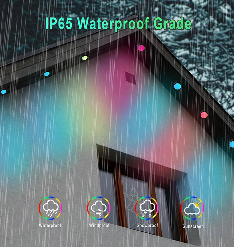 - IP65 Waterproof for Outdoor Use: Designed to withstand outdoor conditions, this light's robust IP65 protection level ensures it remains unaffected by rain, dust, or snow, making it perfect for year-round garden illumination.Ideal for various applications, including Christmas, Halloween, weddings, parties, and commercial decorations.