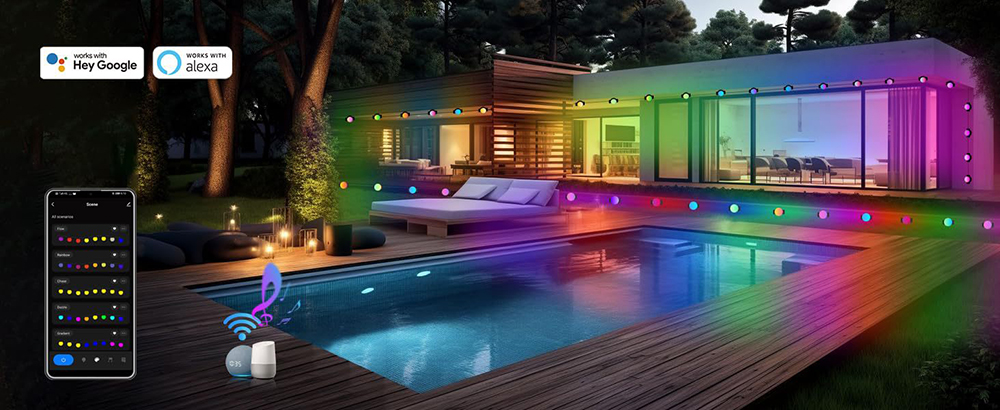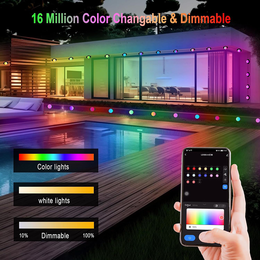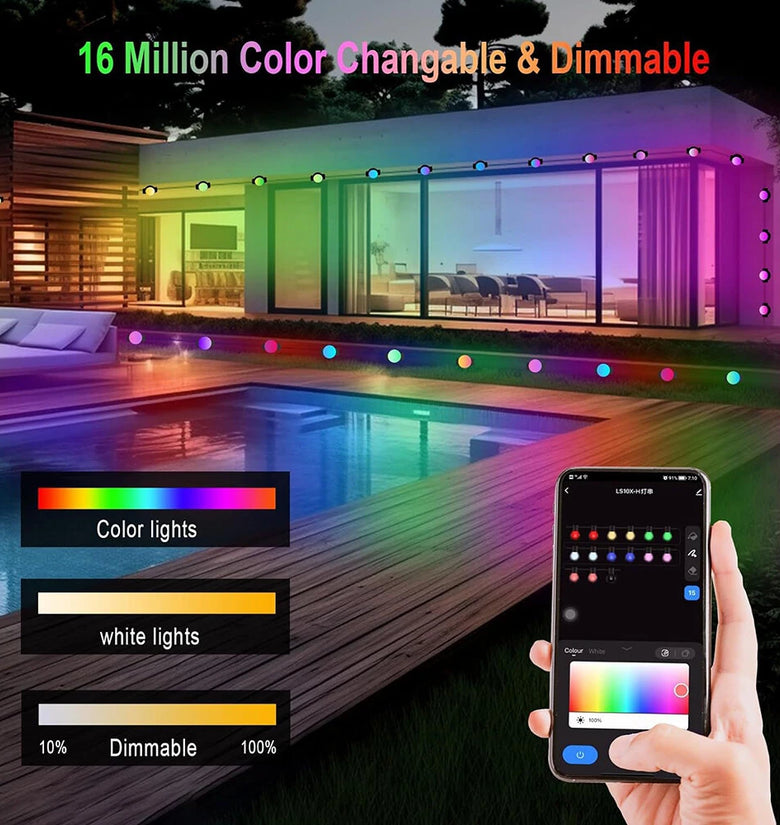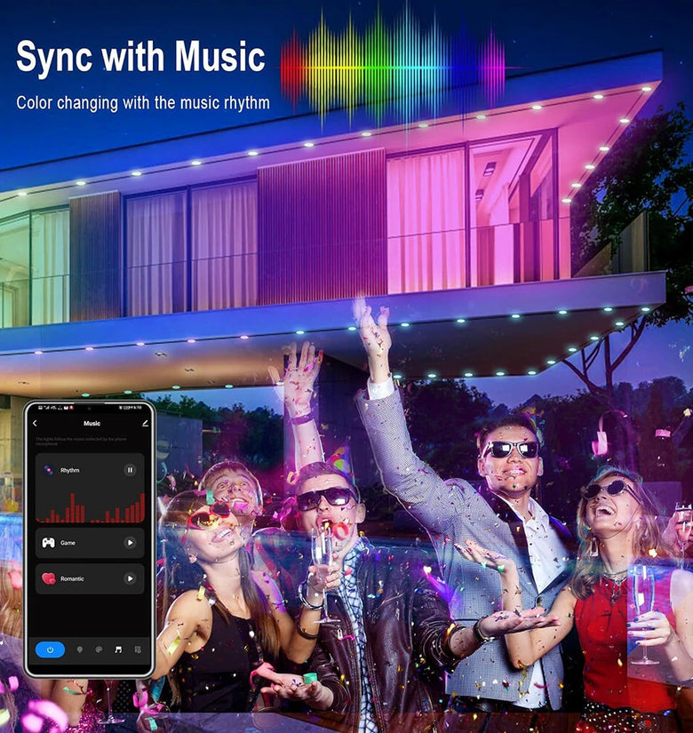 - Music Sync Feature: Create a dynamic atmosphere by syncing the lights with your favorite tunes. The music sync feature responds to the rhythm of your music, adding an interactive and exciting element to any outdoor gathering.