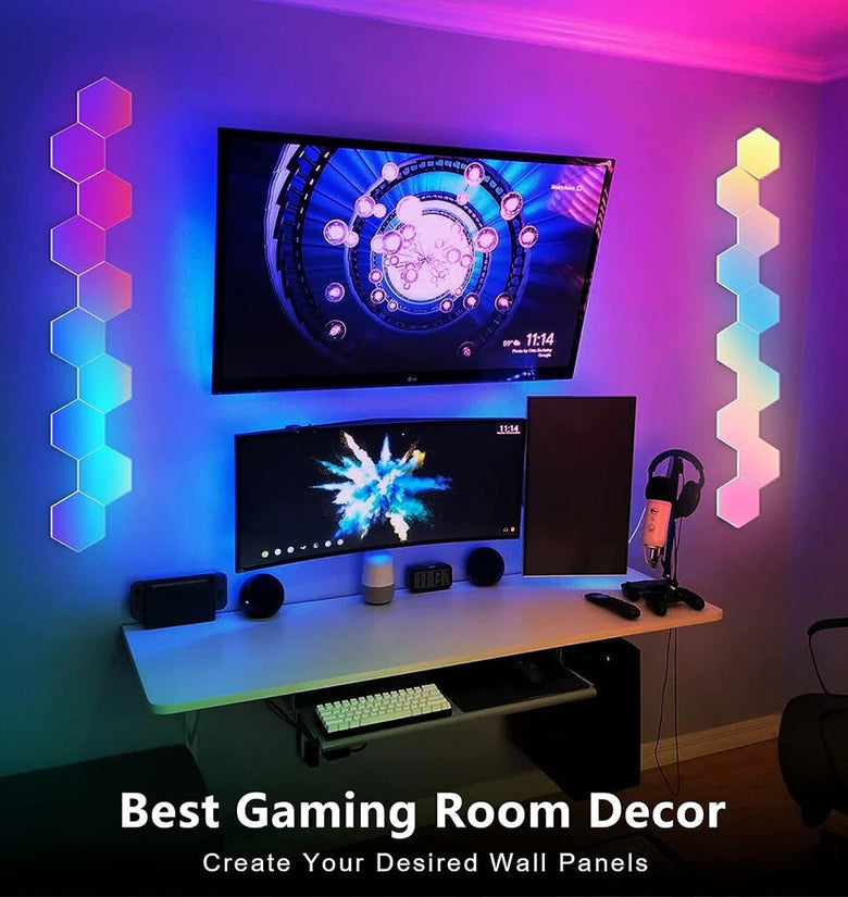 - Versatile Design Configuration: The wall-mounted LED hexagonal light allows for dynamic layout designs. Users can arrange the hexagonal panels into various shapes to suit different spaces, be it the game room, bedroom, or hall. Adjust brightness and colors easily and synchronize lighting with music for an immersive experience.