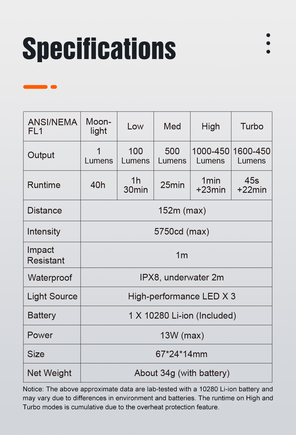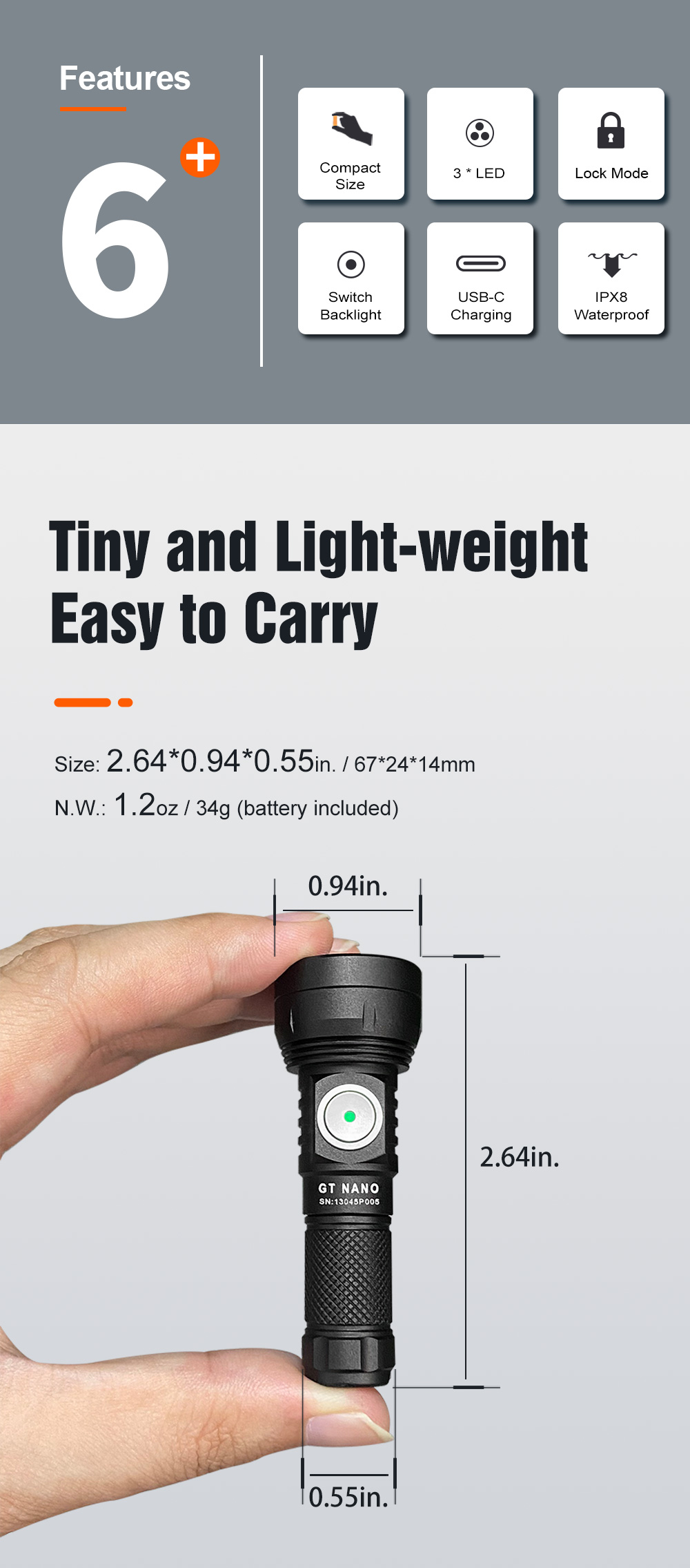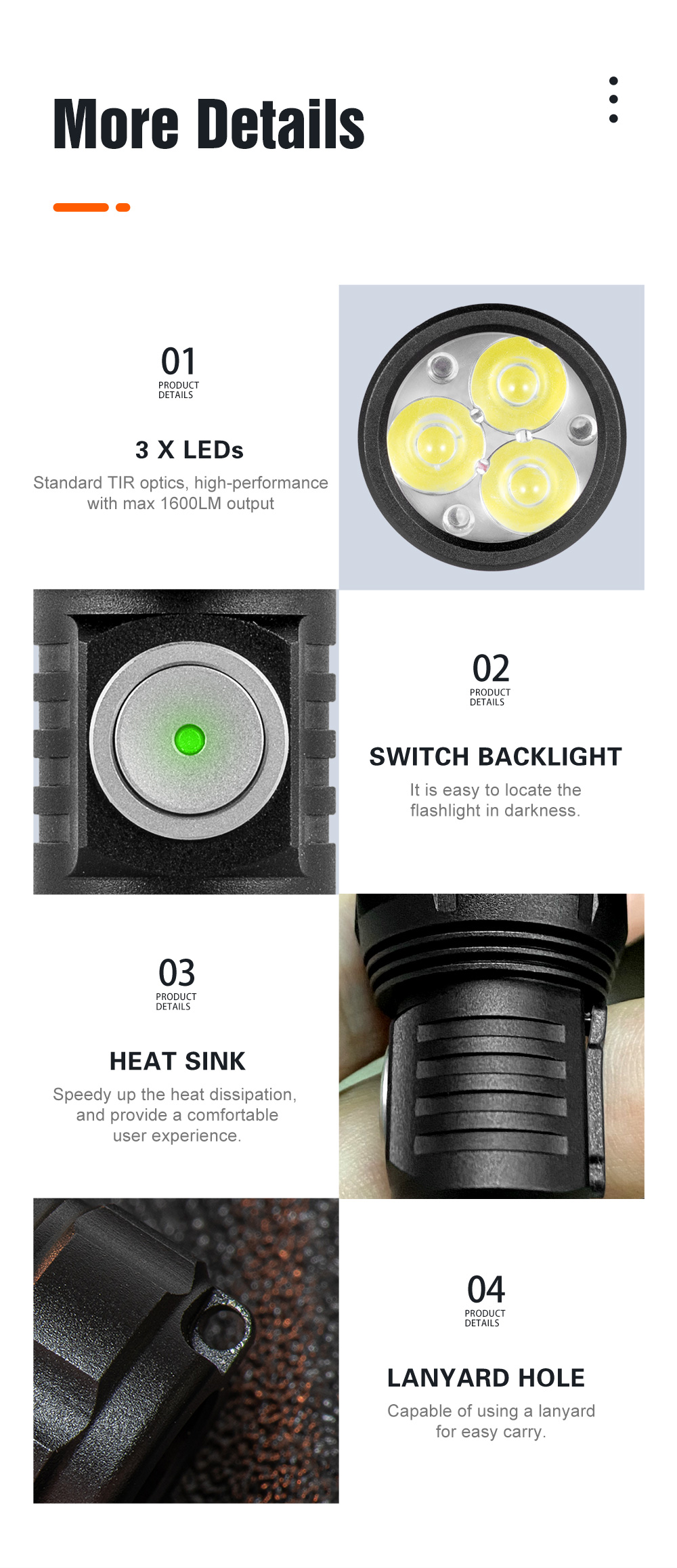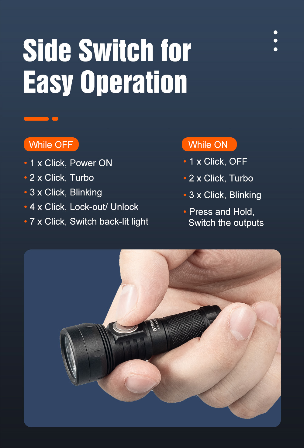 6.Lock-out/Unlock: Quadruple-dlick the switch from OFF.In lock-out mode, momentary ON is available by pressing the