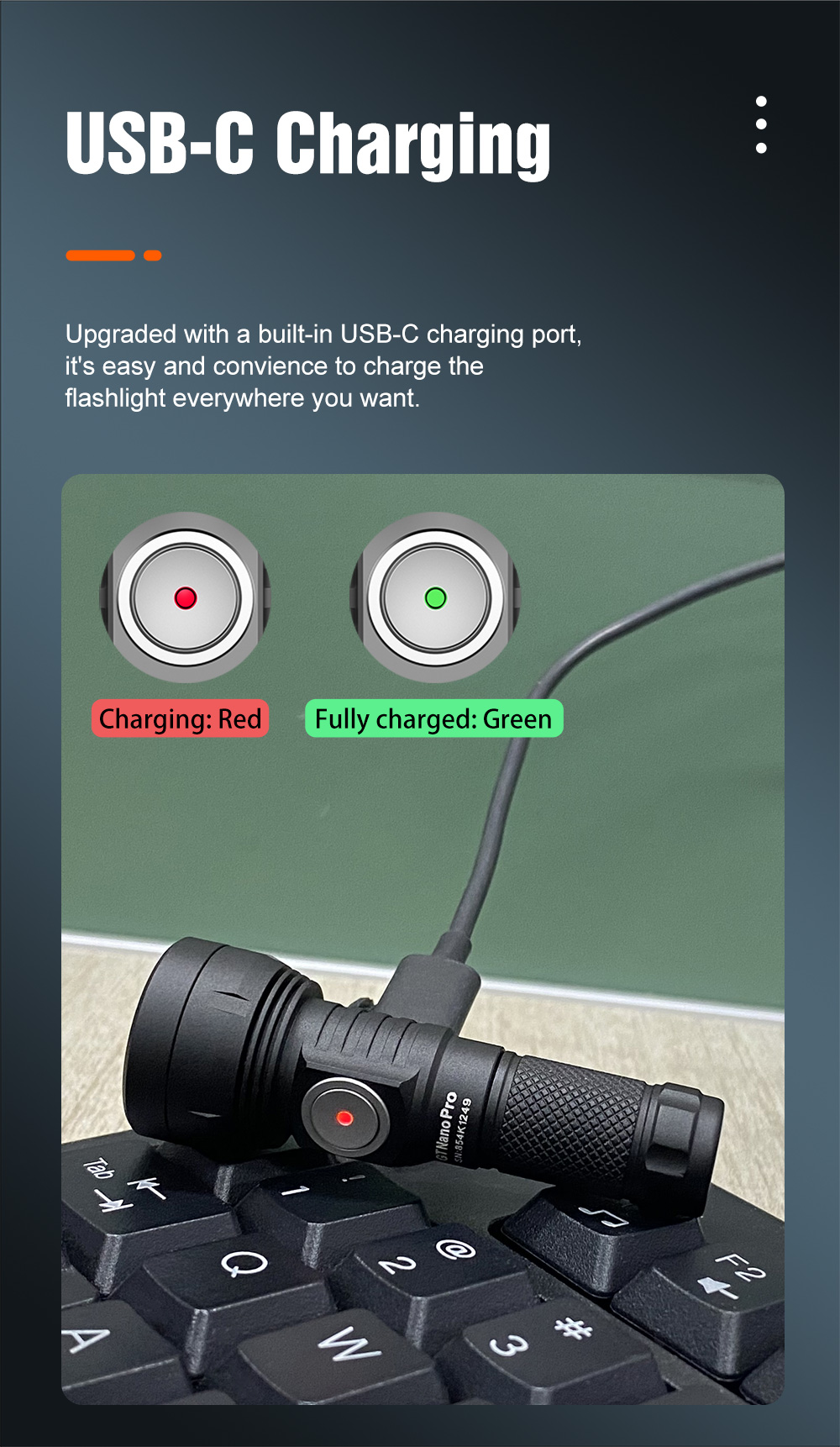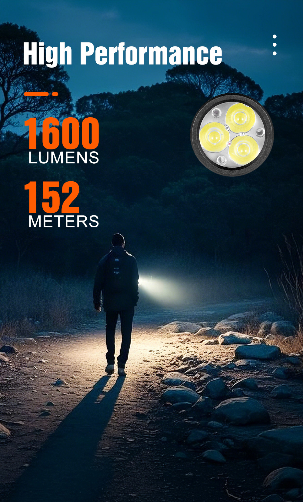2.Output change: While the flashlight is ON, press and hold the switch to cycle through the output levels (Low, Medium,High). Release the switch to select the desired level.