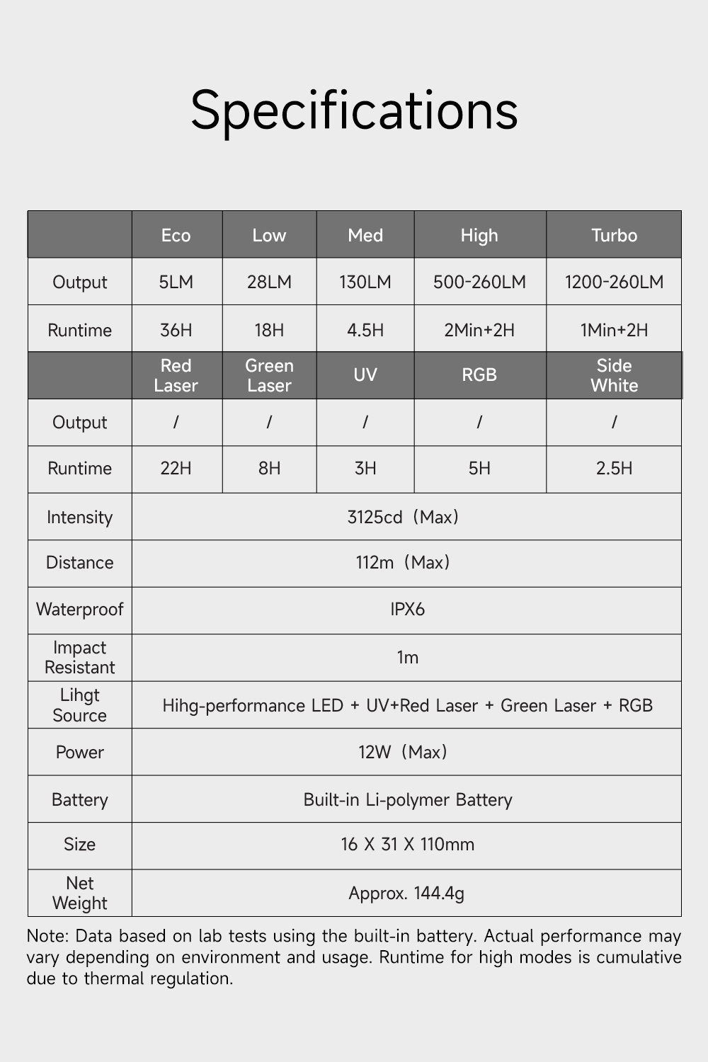 LED +UV + Red LEP + Green LEP + RGB |
