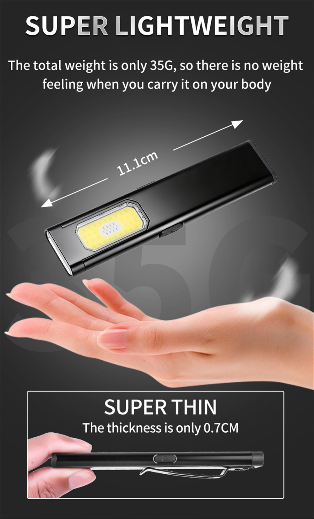 2. Magnetic tail design allows for hands-free use on metal surfaces.