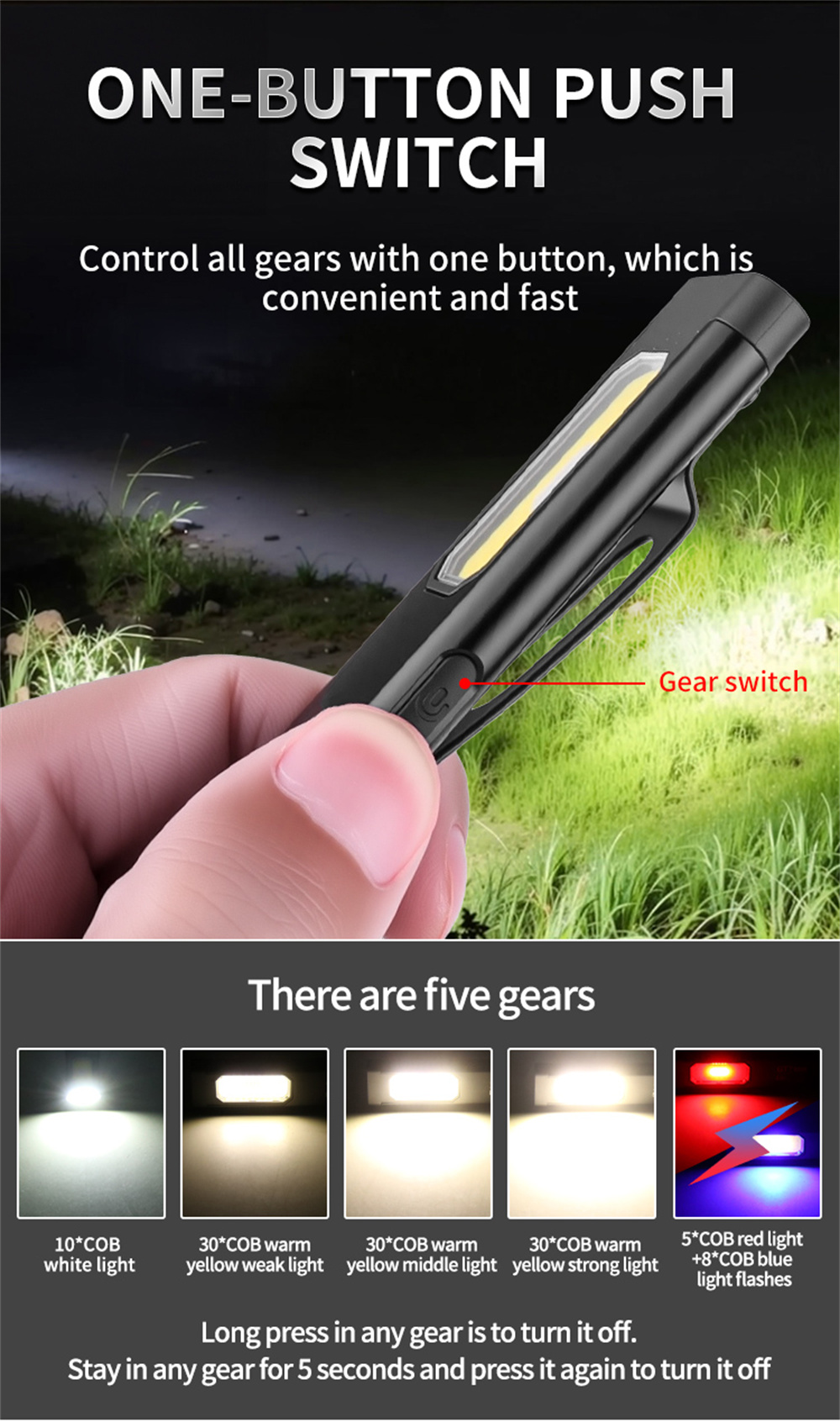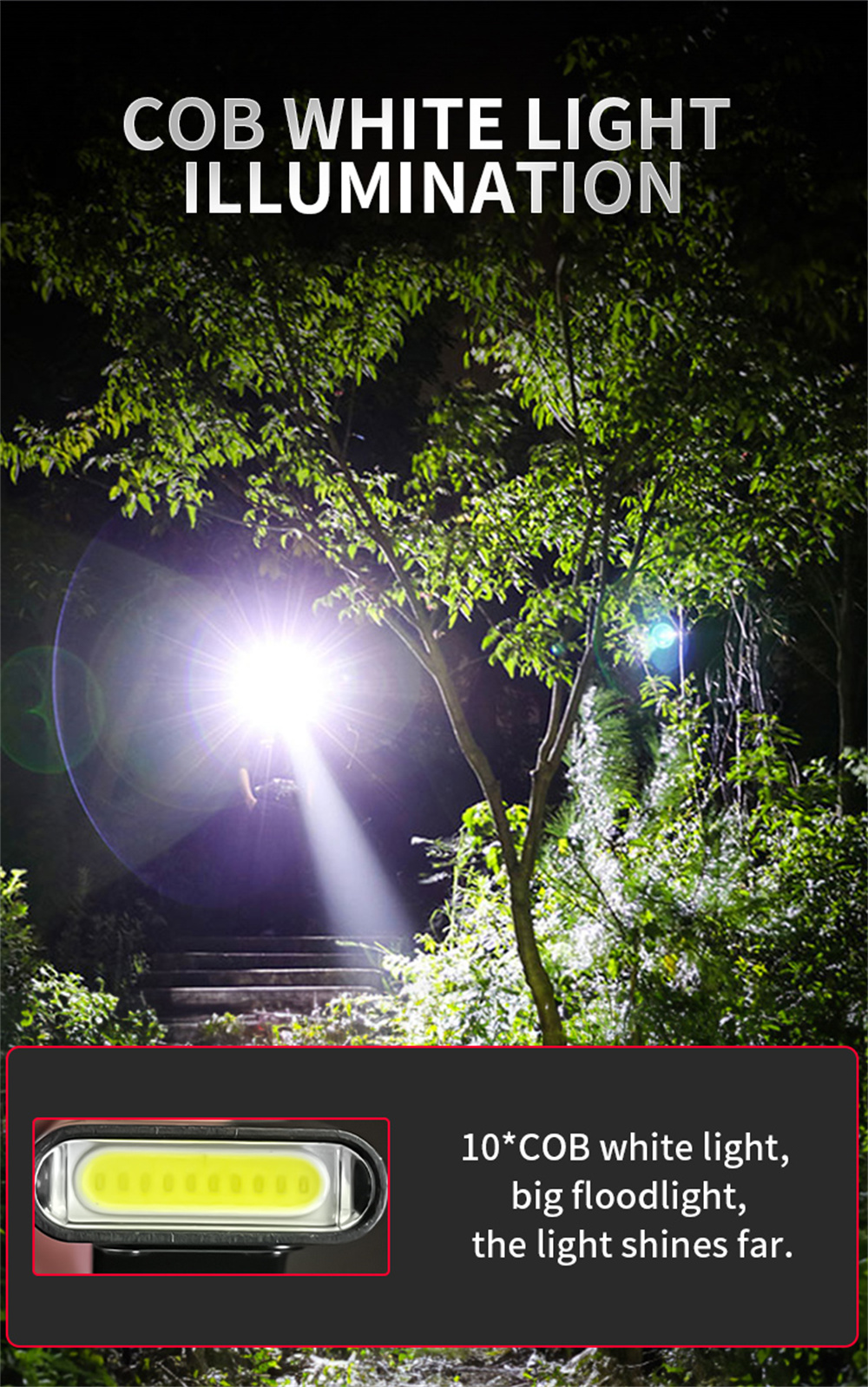 1. High-brightness COB LED for powerful illumination.