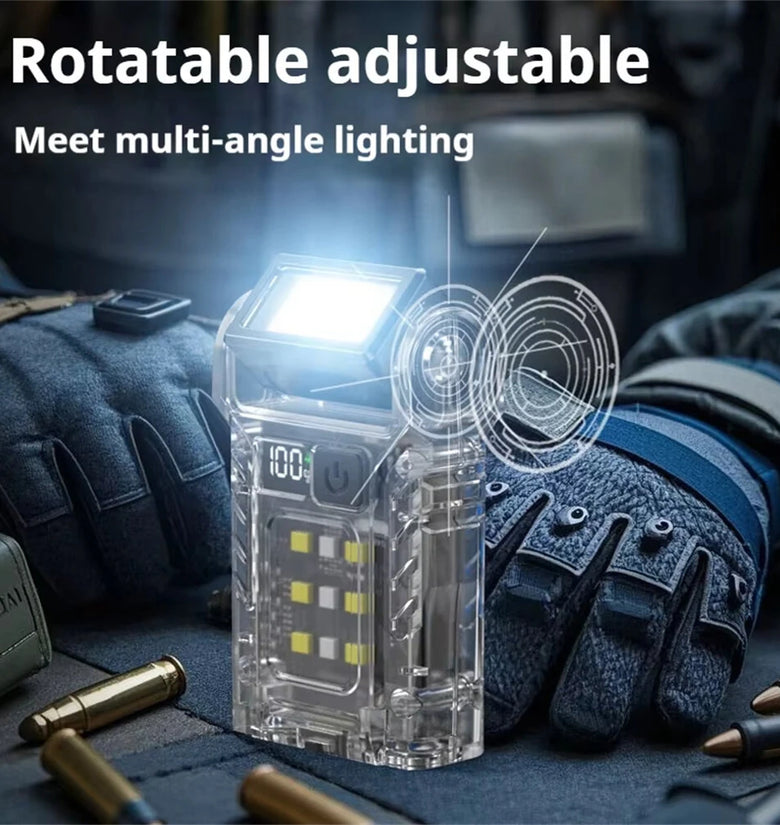 1.Rotatable Head Design: With a rotatable head, the outdoor mini flashlight allows you to adjust the angle of light effortlessly. Whether reading, repairing items, or exploring dark areas, this feature provides versatile illumination situations.