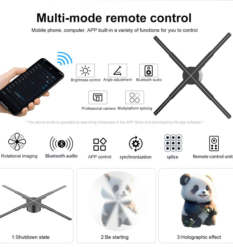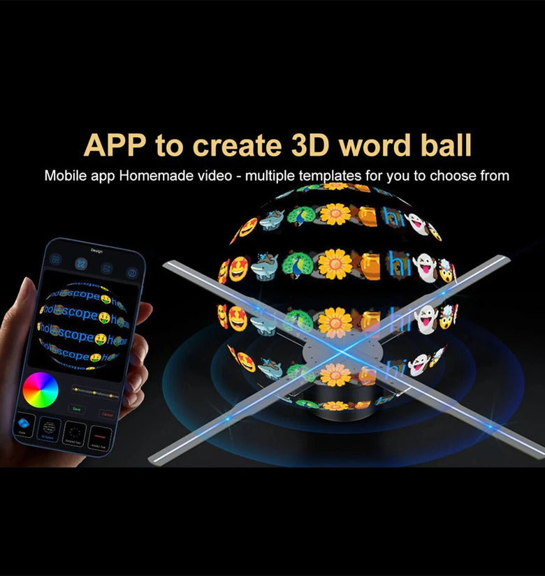 - Fan blades in the process of high-speed rotation, LED light emits light to present 3D stereoscopic levitation effect, you can upload video material at will.