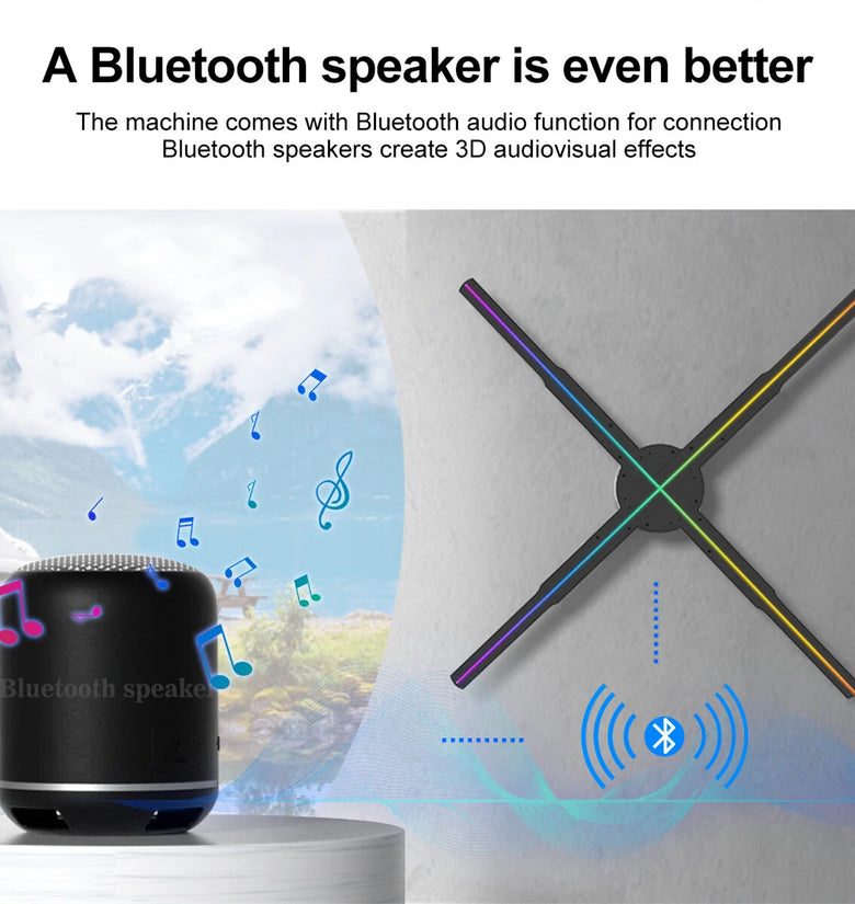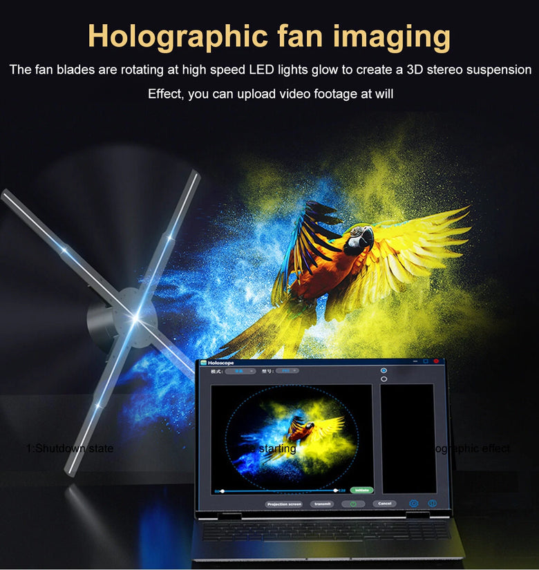 - This 3D holographic projection advertising machine, using 678 high brightness LED beads, the picture quality is clearer, creating a good light source effect, 3D stereoscopic effect is more obvious.