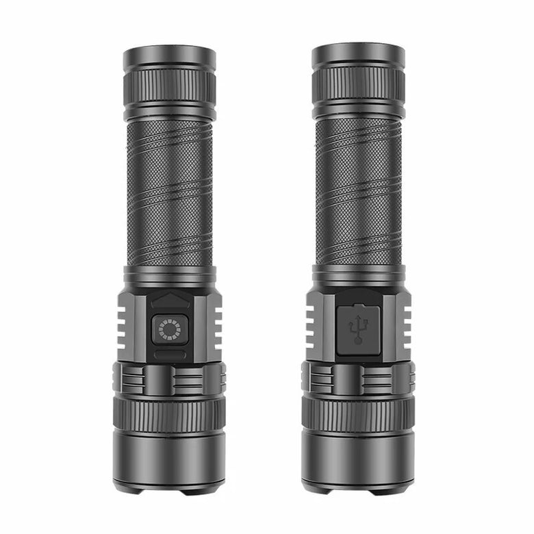 -High brightness P70 large floodlight support, input and output low battery reminder, telescopic zoom surface, anti slip texture, comfortable grip