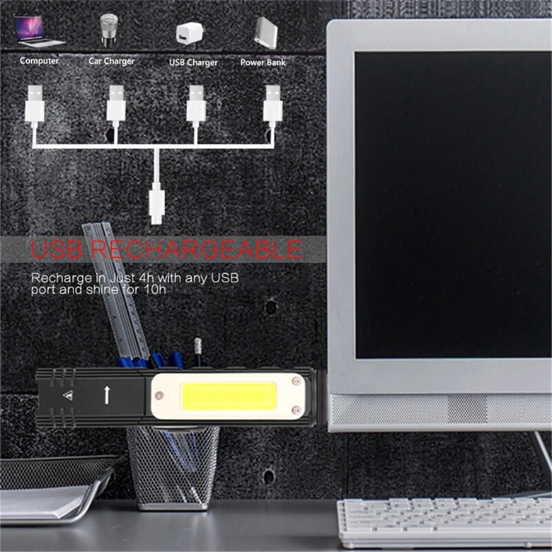 1. Base with magnet, can be adsorbed on any iron surface, can be used as a work light, maintenance light, car emergency warning light, etc;