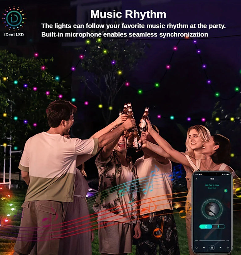 The lighting system includes a built-in microphone that allows the lights to sync seamlessly with your music. Whether you’re hosting a party or simply enjoying some music, the lights will pulse in time with the beat, creating an immersive audio-visual experience.