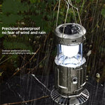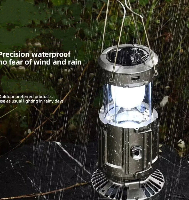 - 2-in-1 Solar Camping Fan with LED LightCompact and versatile, this fan doubles as a bright LED lantern. Hang it inside your tent or use it as a portable fan—perfect for cooling and lighting during camping trips.- Triple Power Supply OptionsStay powered anytime with solar charging, USB cable, or AA batteries (not included). The solar panel ensures you're never left in the dark—even off-grid.- Foldable & Travel-Friendly DesignDesigned for easy storage and portability, this fan folds down to fit in your backpack. Simply expand to switch it on or adjust the brightness to your needs.- Indoor & Outdoor Emergency ReadyWhether you're camping, fishing, or facing a power outage, this fan lantern provides essential light and airflow. Ideal for both everyday use and emergency preparedness.- Dependable Light and Cooling AnywhereCombining light and ventilation, this is the ultimate gear for tents, bug-out bags, or family kits—reliable when you need it most.