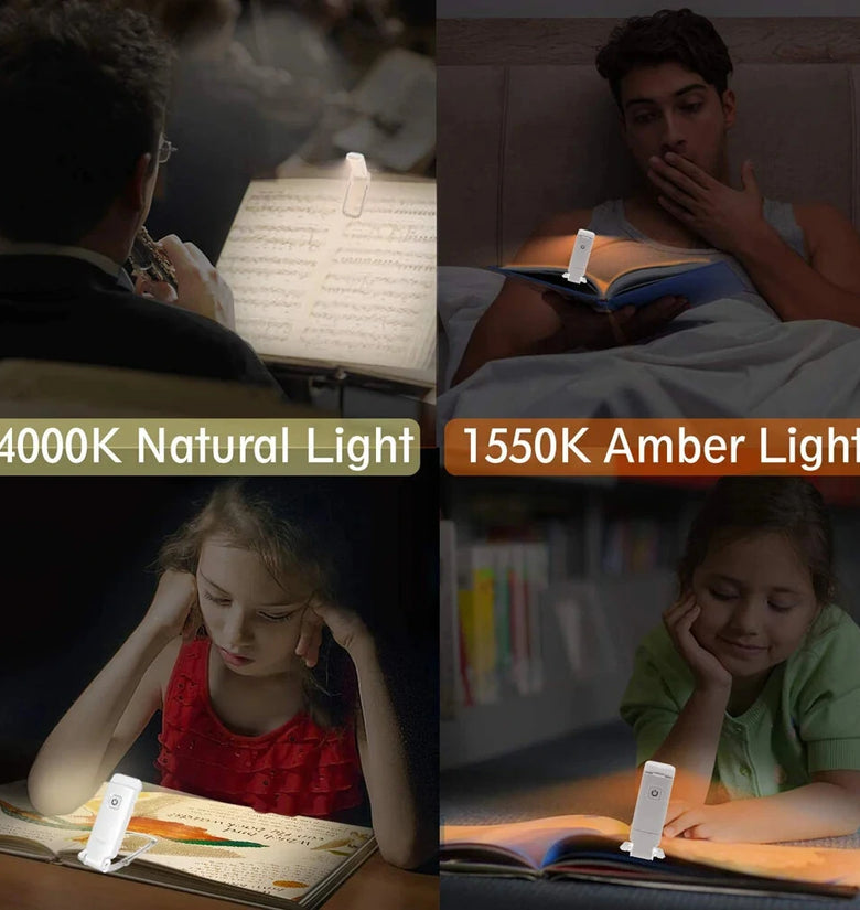 【Eye Care Amber Glow】The upgrade amber book light blocks 99.95% blue light, will not stimulate your photoreceptors or disrupt circadian rhythm while using it in bedroom. Effectively protects your eyes from being damaged by blue light when reading.
