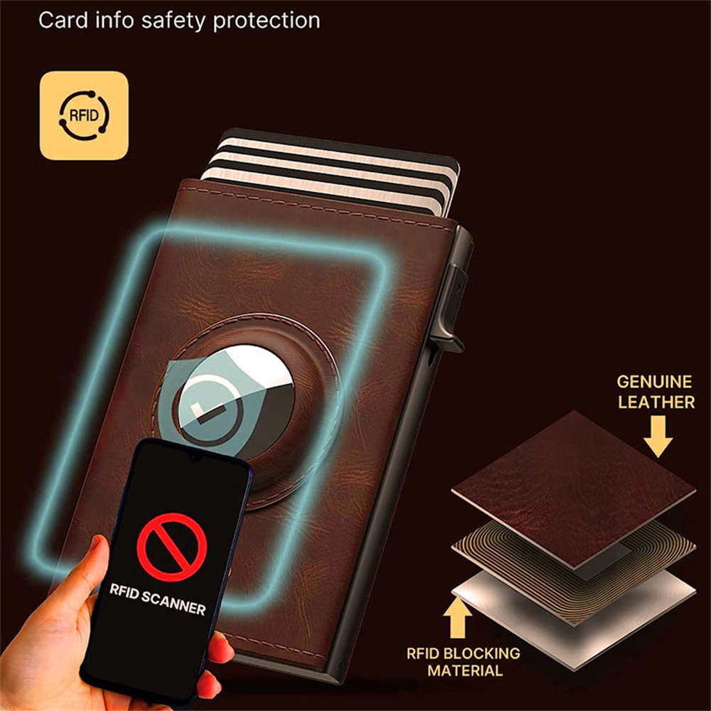 • AirTag Microfiber Men's Automatic Popup Card Holder Tri-fold RFID Anti-theft Brush Purse Wallet Credit Card Clip