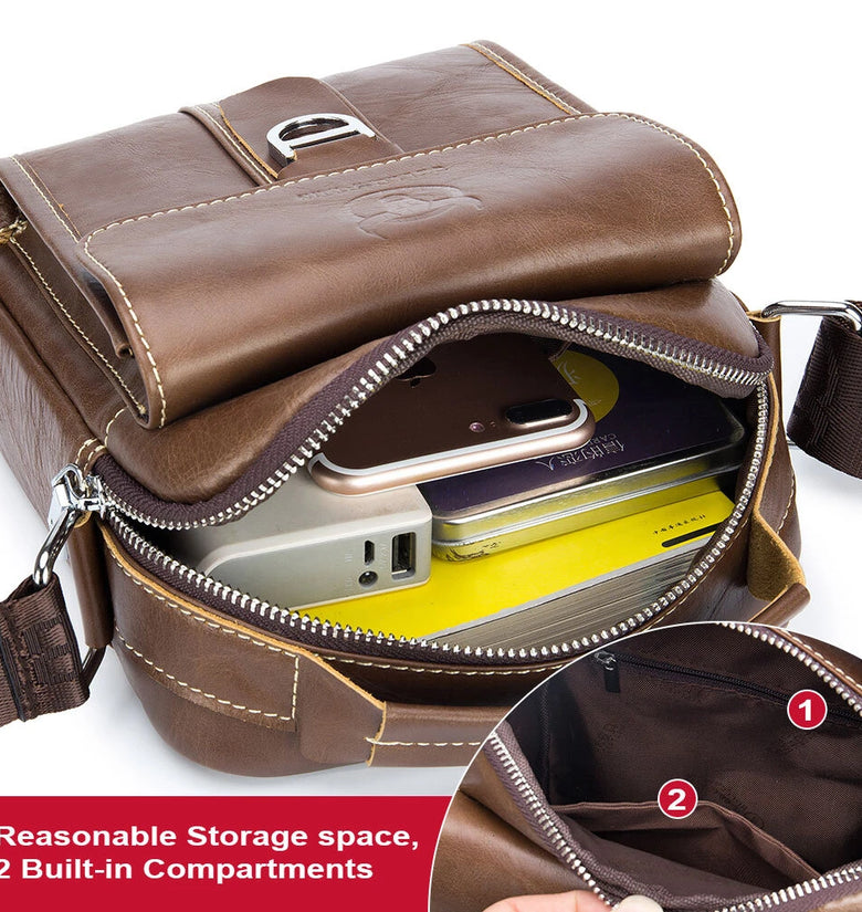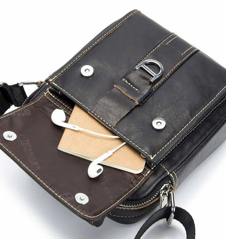 1, Material: 100% high quality genuine leather, traditional handmade craftsmanship, nylon thread stitching, well made, well stitched, hardware and assembled, smooth and elegant mercerized fabric and polyester lining can protect the items well.2, Specifications: size 8.66''x7.09''x3.15'' (22cm*18cm*8cm), Adjustable Shoulder Strap The men's bag is equipped with a non-slip shoulder strap, which can be easily adjusted to the preferred length. Shoulder strap length: About 65cm-125cm(25.6''-49.2'').3, Structure: Adjustable strap Classic design, comfortable to carry, with a sturdy carry handle on the top, convenient for you to use at any time, 1 main pocket, suitable for putting cell phone, ipadmini, wallet, keys, etc. 1 zipper inner pocket and 1 inner pocket, 1 front magnet pocket, 1 back zipper pocket, convenient for putting small items that are easy to lose, and 1 back zipper pocket, convenient for putting small items that are easy to lose.4, Simple & Fashionable Crossbody Bag, suitable for casual or formal occasions to carry. Business, school, traveling, shopping, hiking, riding, etc. Perfect gift for father, husband or male friends.5, Multifunctional & Practical Design: This spacious shoulder crossbody bag can hold all the essentials for your daily use, wallet, cell phone, small umbrella and more.