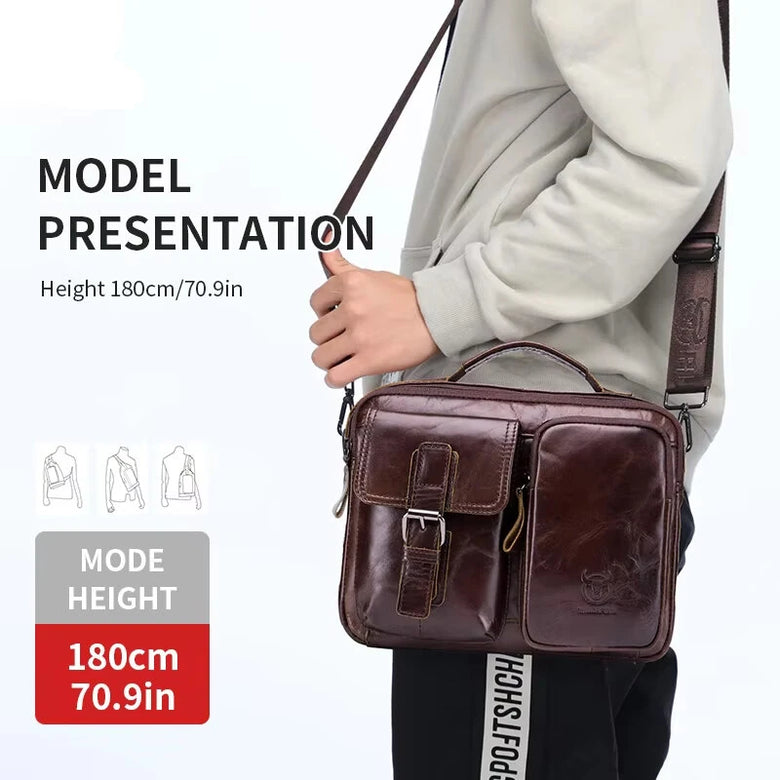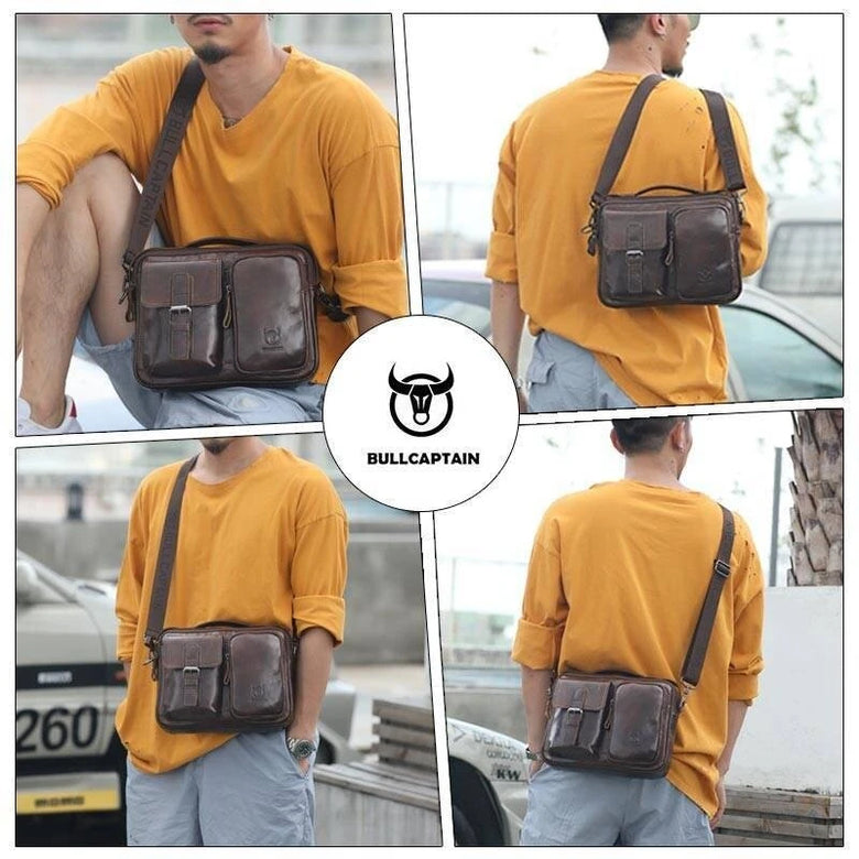 1.The BULLCAPTAIN Men's Shoulder Bag is the perfect blend of fashion and function for the modern man on the go. Buying the BULLCAPTAIN Men's Leather Small Crossbody Bag means you'll have a reliable and stylish accessory to brighten up your daily routine. Own it today and experience the difference!2. This crossbody bag is made of high quality first layer cowhide fabric with a breathable polyester lining.3.Size: 29cm(L)*11cm(W)*21cm(H)/11.42 inch x 4.33 inch x 8.27 inch. (Adjustable shoulder straps ensure maximum comfort when backpacking, ideal for work, travel or daily commute.4.This men's leather shoulder bag has multiple pockets. Consisting of a zippered main pocket, two front and one pocket of back, a cell phone pocket and a card pocket, it can safely store and organize your cell phone, miniPad, 10” tablet, wallet, keys, ID card, credit cards, snacks, books and other small personal items.5.Fashionable, multifunctional and practical design. Suitable for daily use. Perfect for student study, business, outdoor, travel and work.