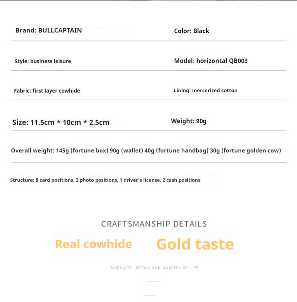 Features: 1. Premium quality cowhide leather for durability 2. Compact size is perfect for sports gear users 3. Multiple card slots and compartments for organization 4. RFID blocking technology for security 5. Stylish design suitable for any occasion Package includes: 1 x Men's Wallet 1 x Gift Box