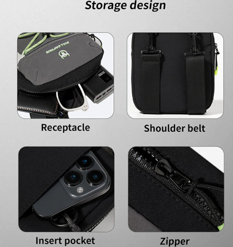 Specifications: Brand BULLCAPTAIN Closure Type Zipper Model Type Solid Style Casual Gender Men Size 19.5 * 8 * 24 cm Features:1. Zippered pocket: Zippered pock...