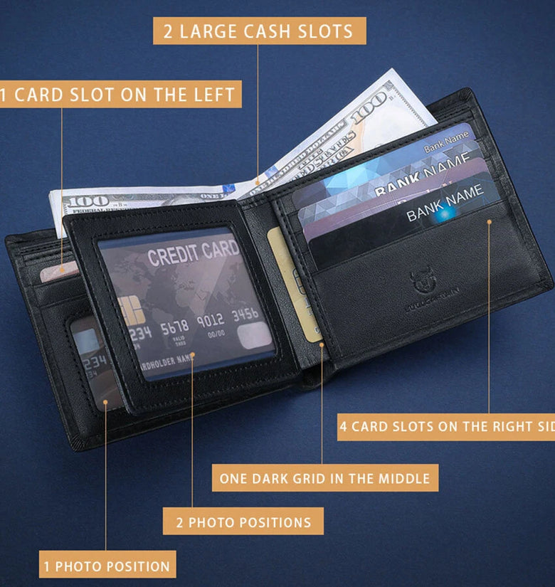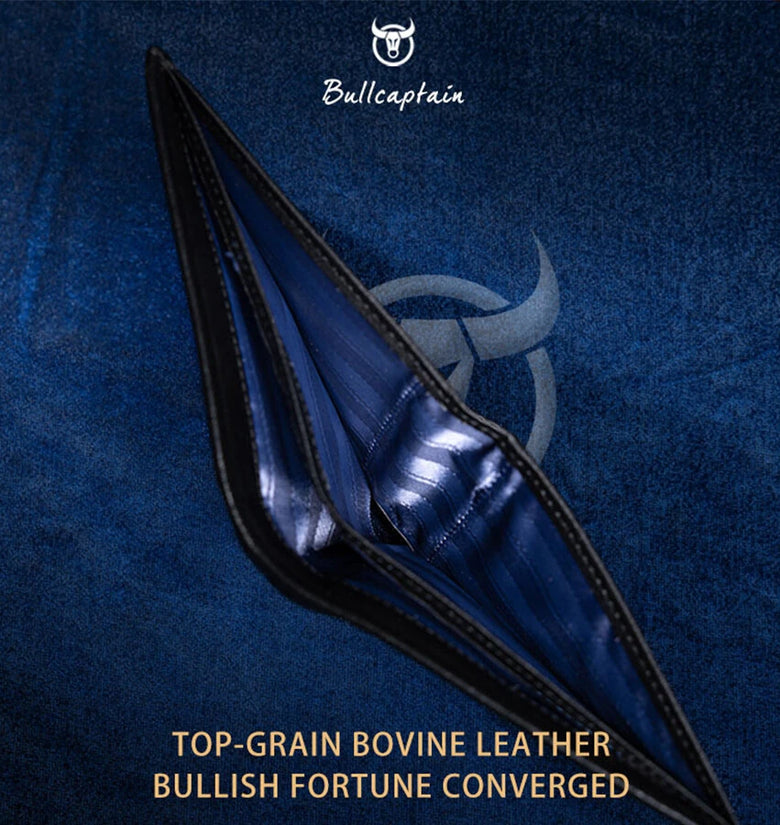• BULLCAPTAIN Men's Cow Leather Wallet Large Capacity Multi-Card Slot RFID Card Holder Billfold Money Clip Gift for Boyfriend Father Husband Gift