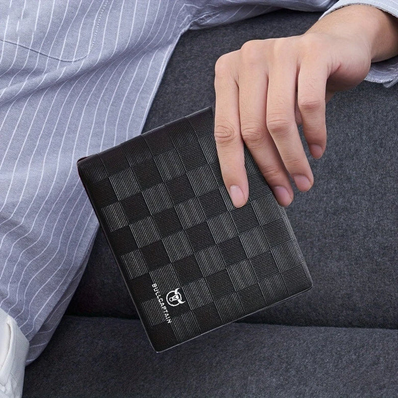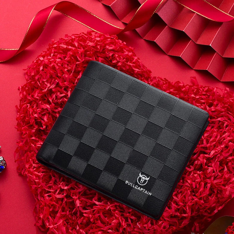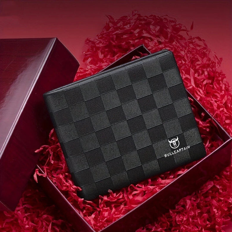 BULLCAPTAIN Men's Genuine Leather Wallet Black Cowhide Large Capacity Multi-card Folding Purse Credit Card Holder with Gift Box