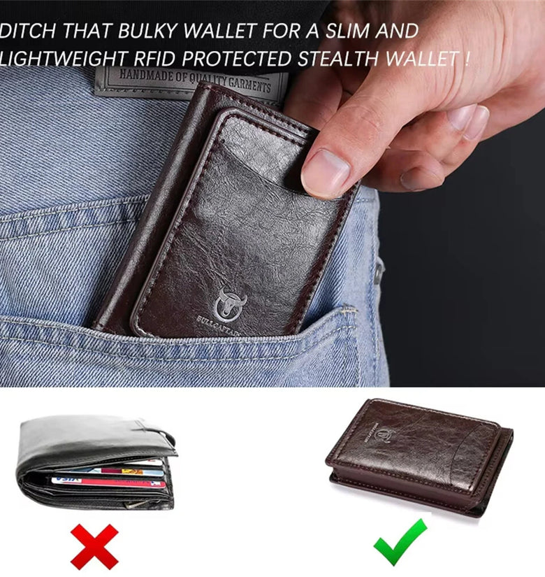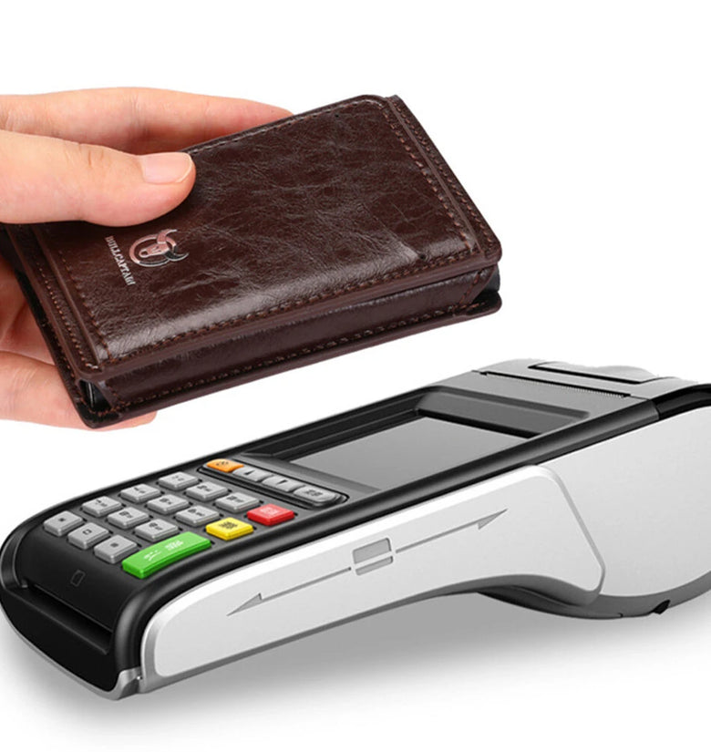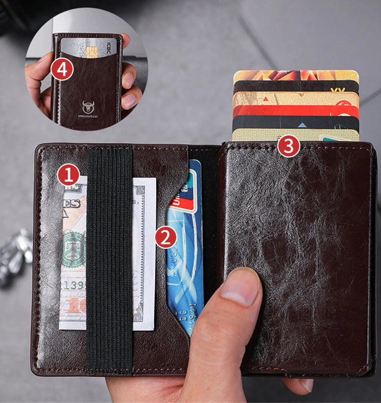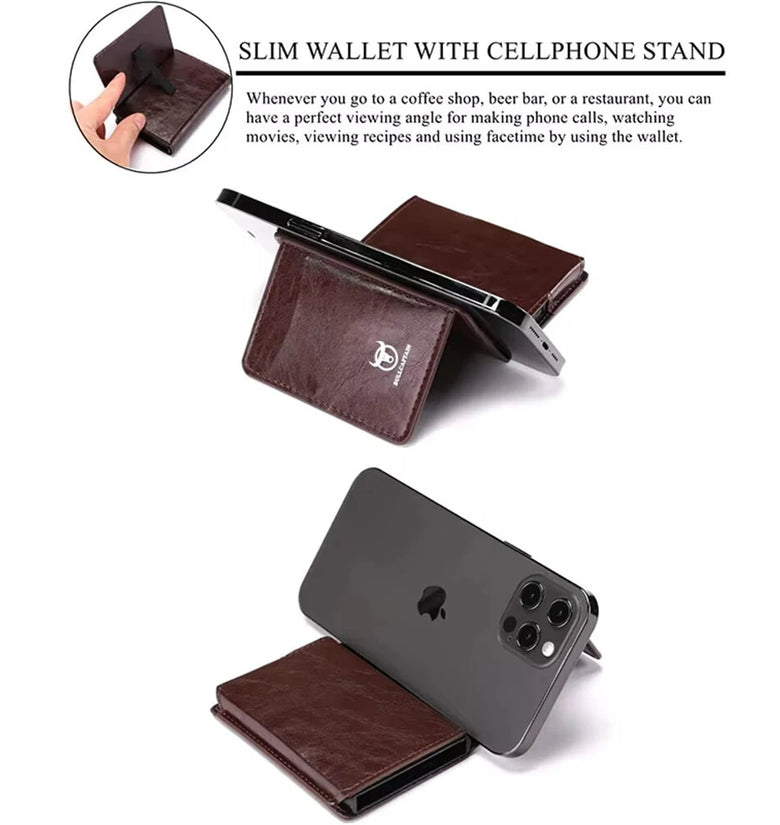 BULLCAPTAIN Men's Mobile Phone Holder Card Holder RFID Blocking Leather Wallet Aluminium Box Credit Card Holder Money Clip Slim Design Secure Protected