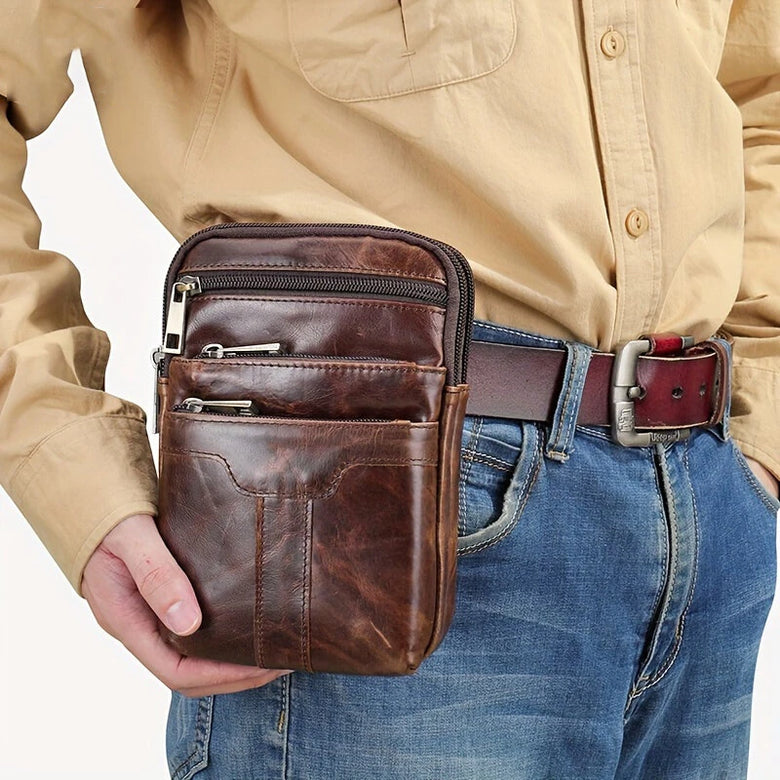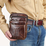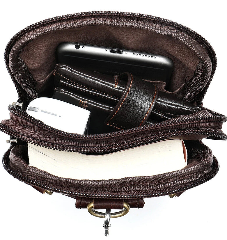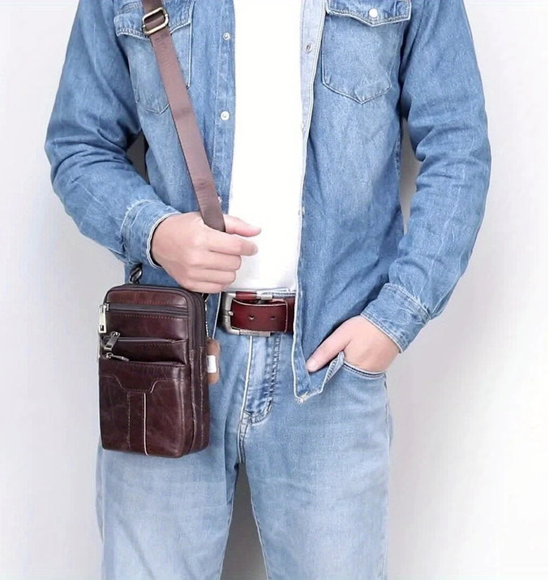 1. CLASSIC VINTAGE DESIGN: The cowhide crossbody bag features a classic vintage design that will never go out of style. Its timeless appeal makes it suitable for all occasions, from casual outings to formal events.2. SOFT & WEARABLE MATERIAL: The shoulder bag is made of soft genuine leather, which provides durability while maintaining a luxurious texture. It has excellent resistance to wear and tear, ensuring long-term use.3. MULTIPLE POCKETS: The satchel comes with multiple pockets to organize your belongings efficiently. It provides ample space to store your wallet, cell phone, keys, cosmetics and other essentials. The well-organized compartments make it easy to find and access items quickly.4. MULTIPLE CARRYING STYLES: This men's bag offers multiple carrying styles, including shoulder and crossbody styles and belt wear. Adjustable straps allow for customized lengths, providing comfort and flexibility according to personal preference and needs.