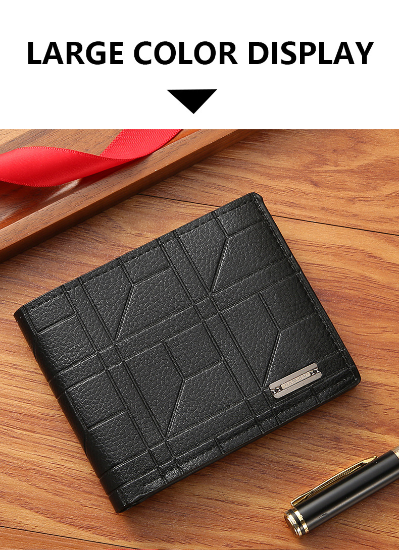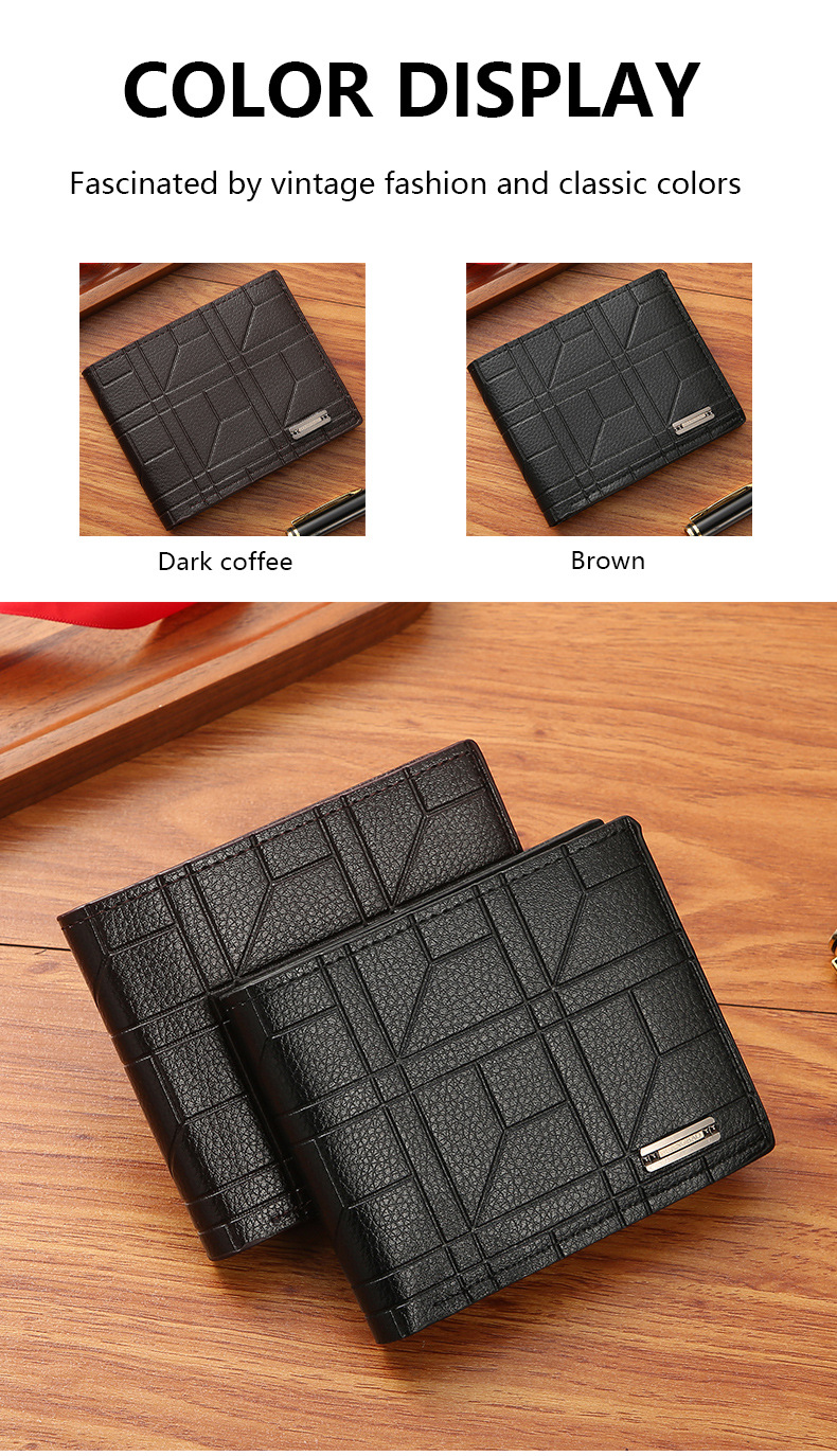 • Men Bifold Wallet Fashion Soft PU Leather Money Clip Multicard Slot Card Holder Thin Purse Simple Checked Short Wallet