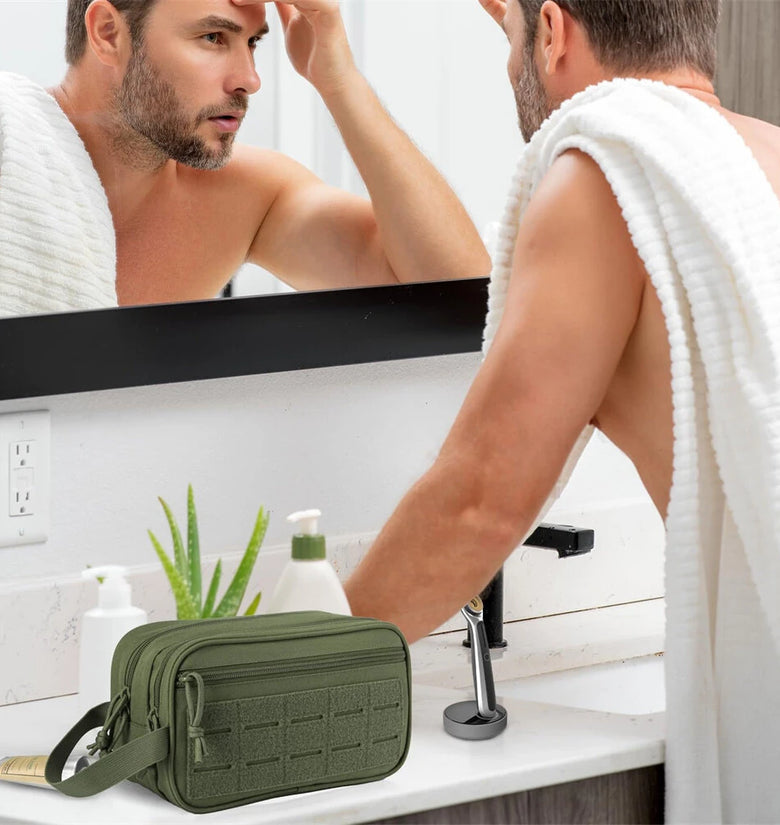 • Men's Multifunctional Toiletry Bag Waterproof Compartment EDC Tool Storage Bag Skin Care Shaving Hygienic Organizer for Outdoor Travel Adventures