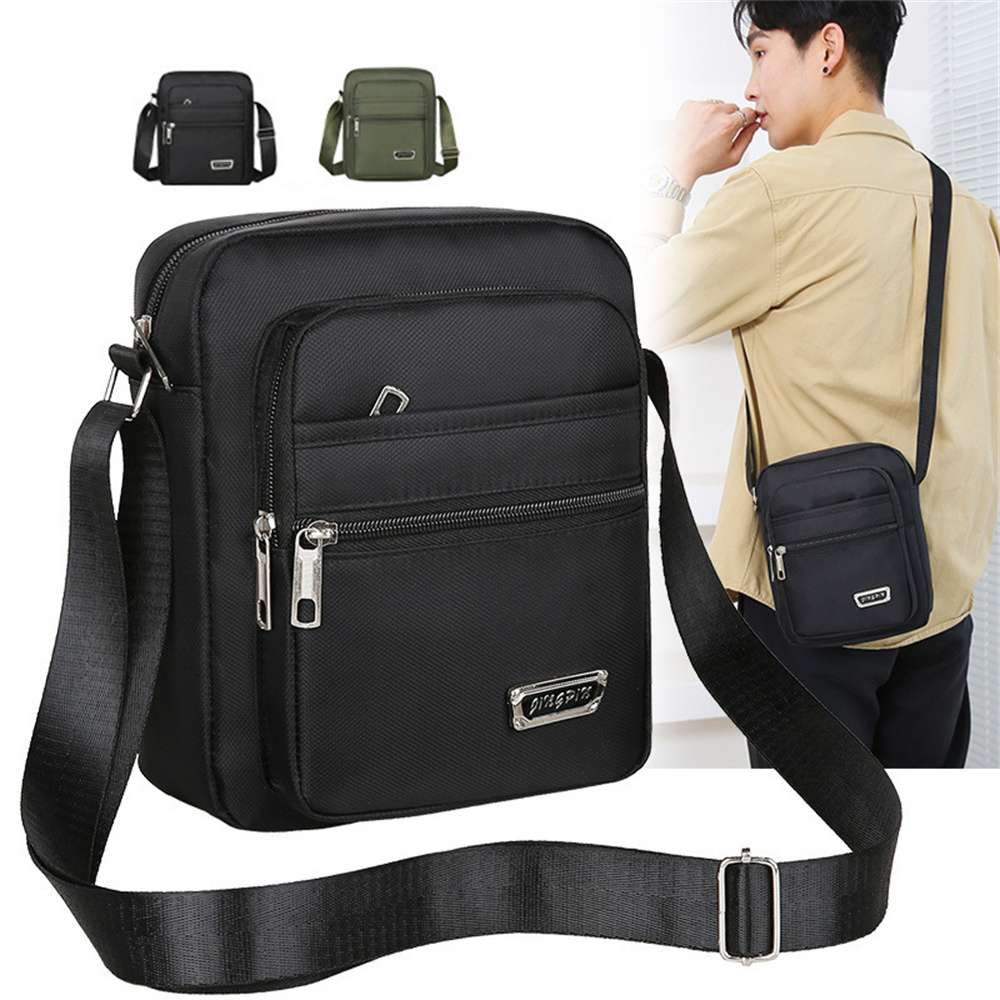 • Men's Portable Business Casual Crossbody Bag Multi-compartment Lightweight Waterproof Nylon Shoulder Bag for Travel Daily Use